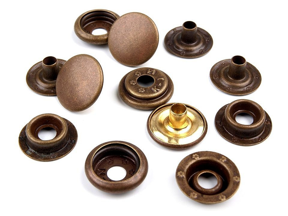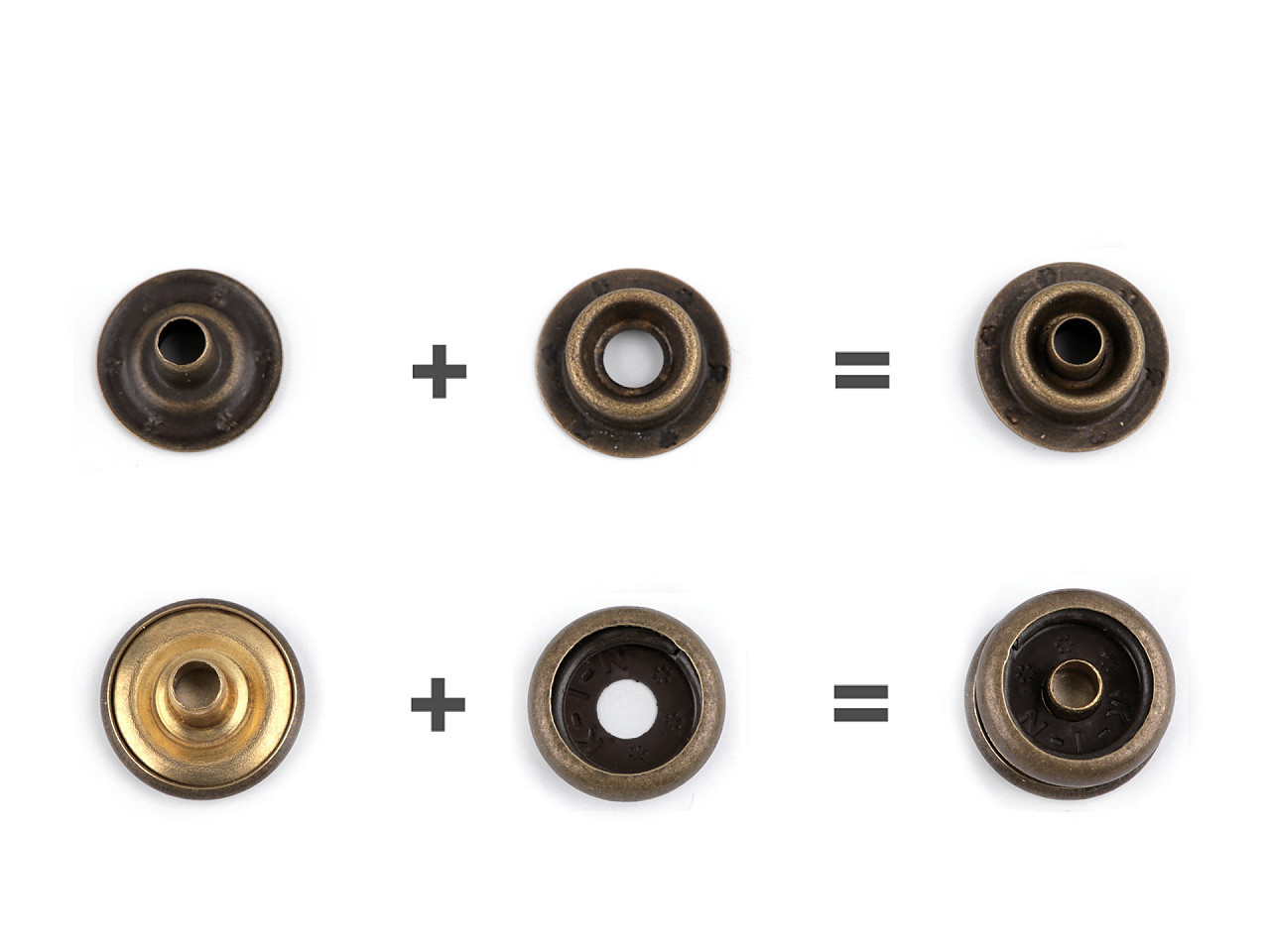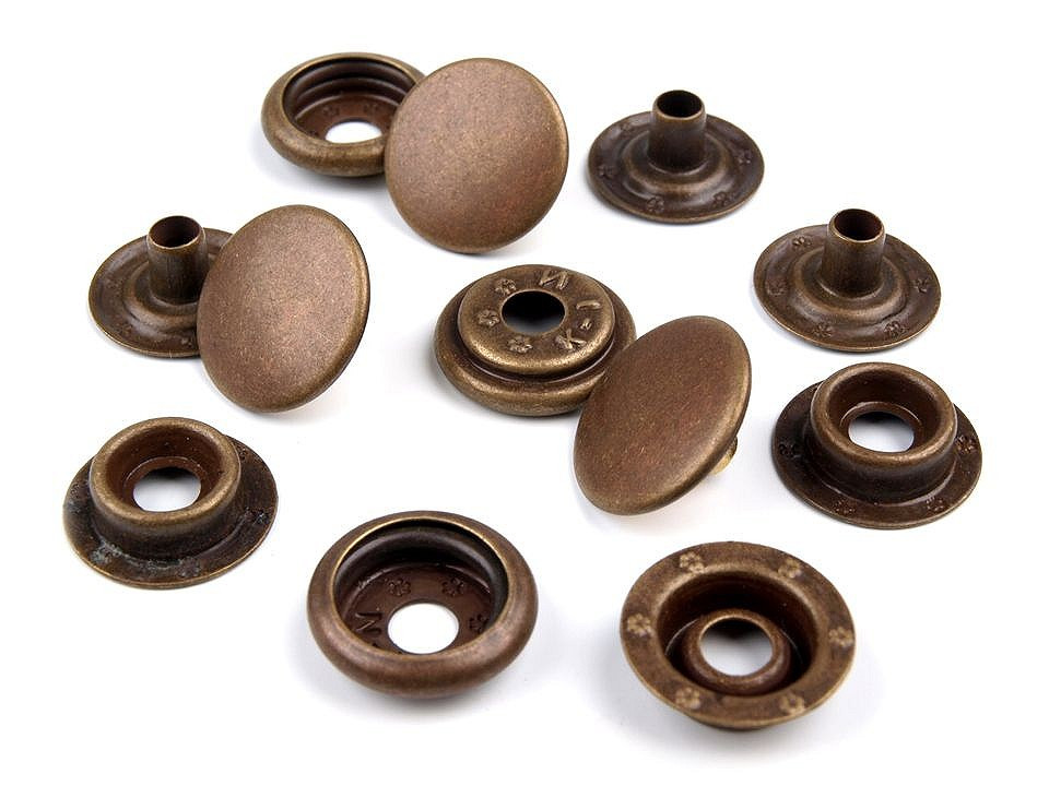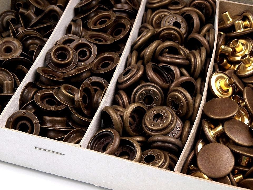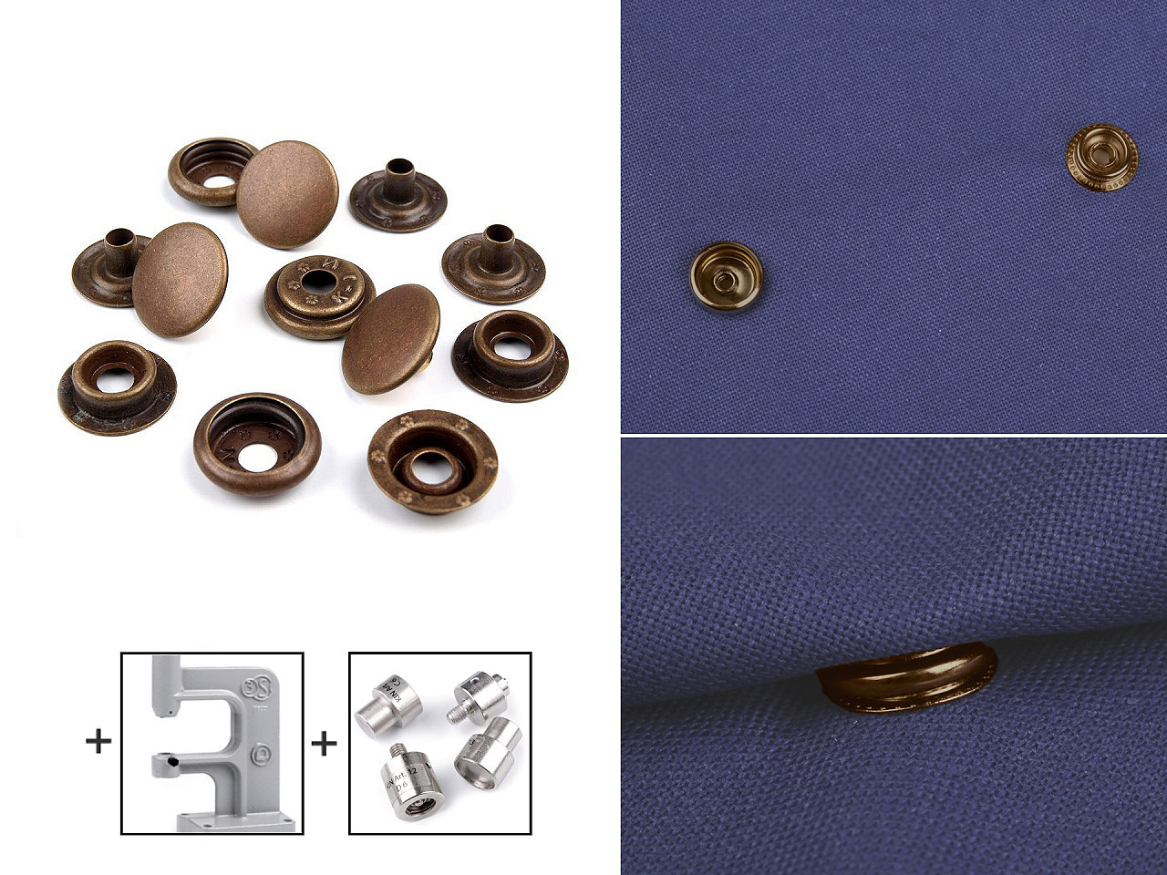 Knoflíky se používají ke spojování běžných druhů látek. Nýtování se provádí lisem, který lze u nás objednat.