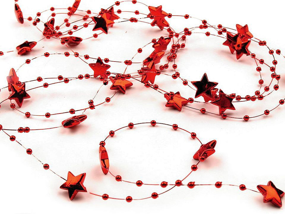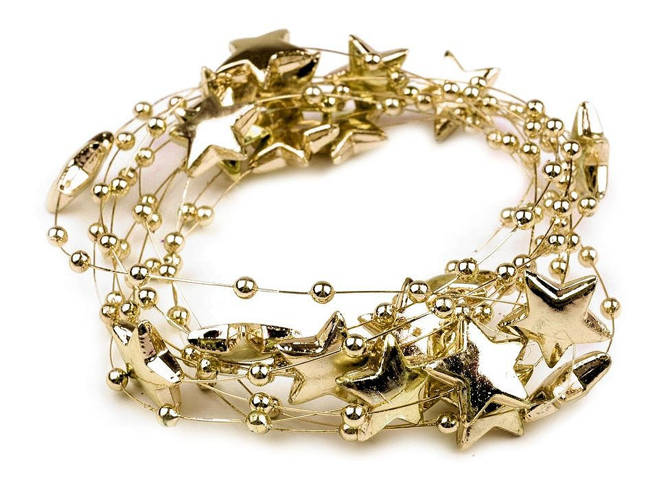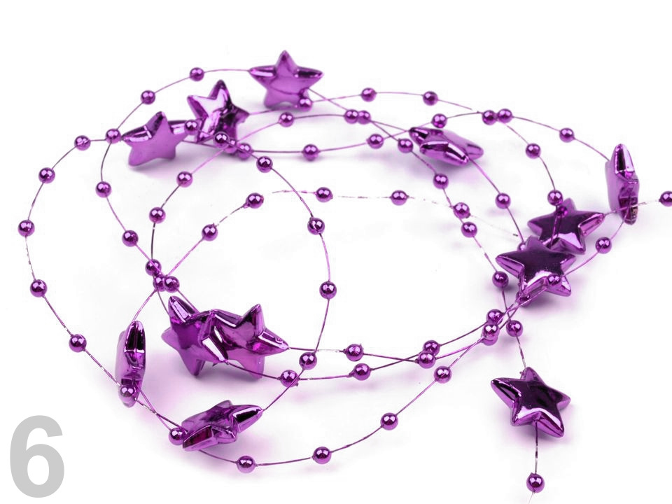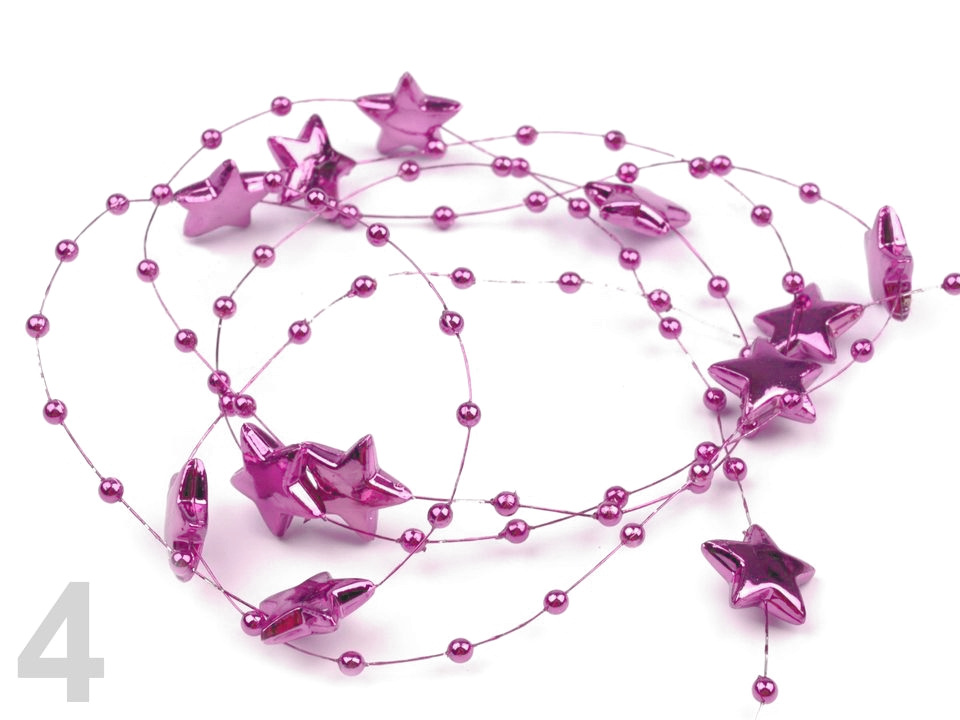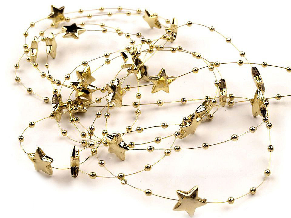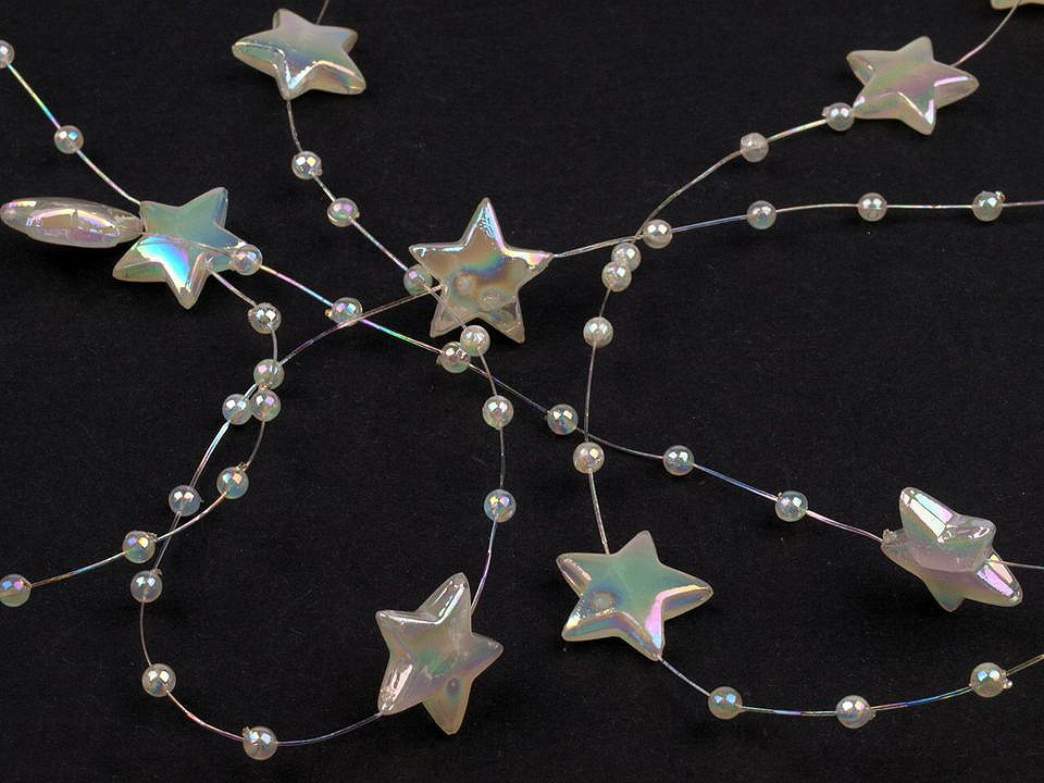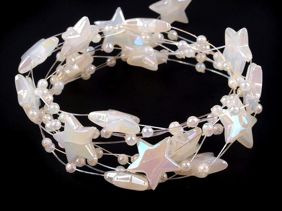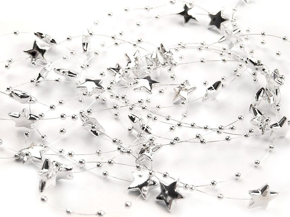 Dekorační perličky s hvězdičkami na silonu využijete jako ozdobný řetěz na věnce, kytice, slavnostní tabule, atd.