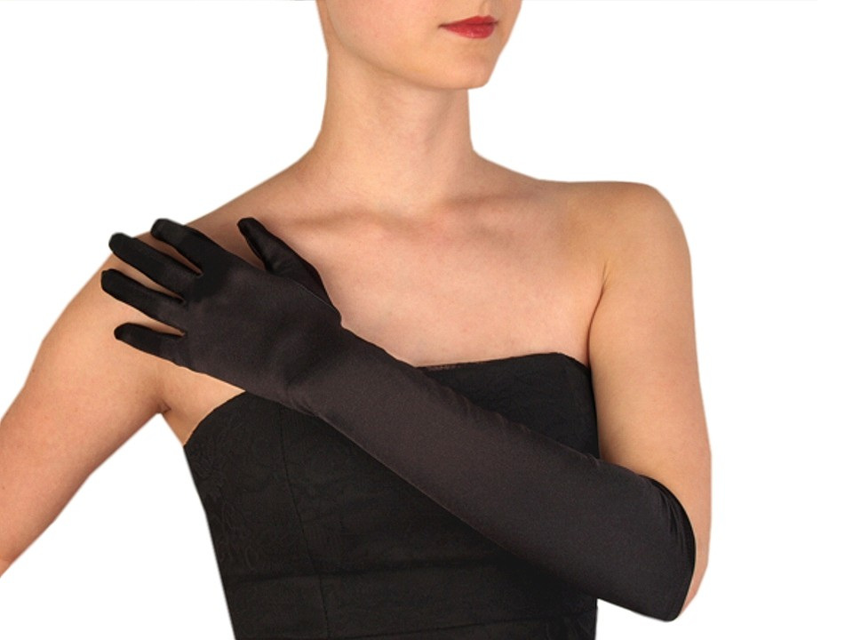 Společenské rukavice o délce 47 cm. Jsou jednoduché, noblesní.