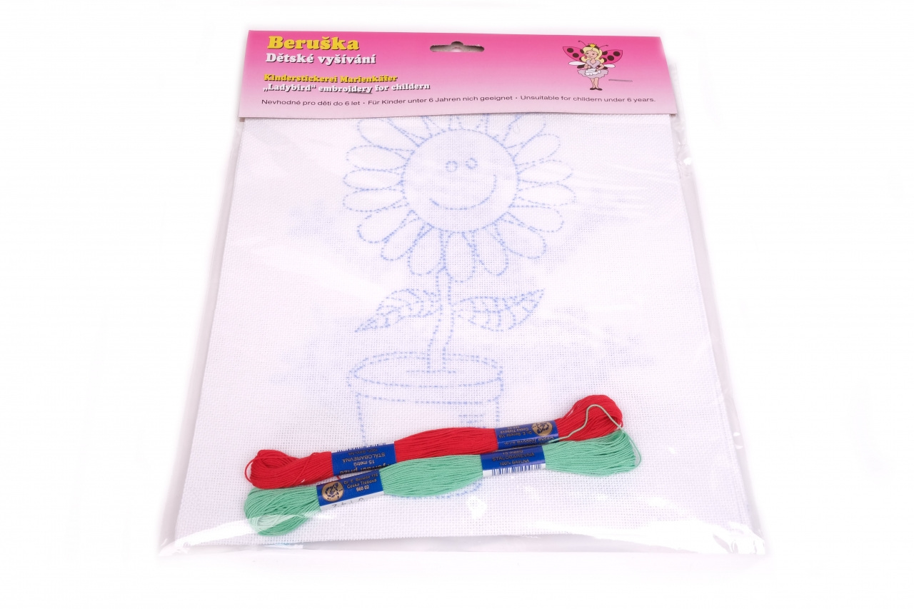 Souprava obsahuje vyšívací látku, na kterém je natištěný motivek 2ks o rozměrech 23 x 25 cm, vyšívací přízi mouline 4ks. Tato souprava vyšívání je vhodná pro děti od 6 let.