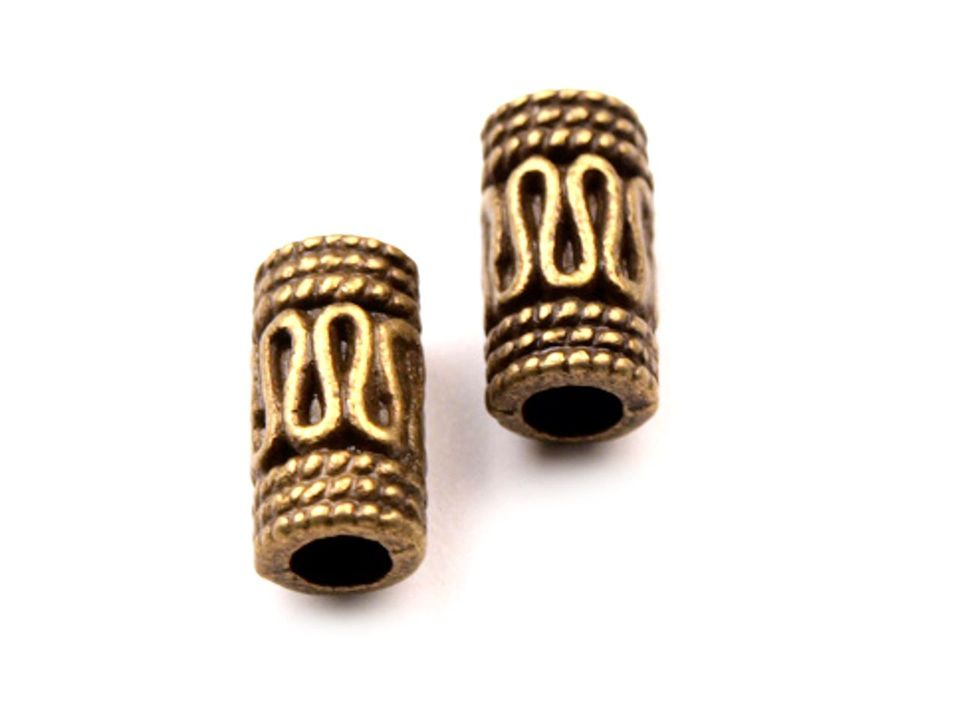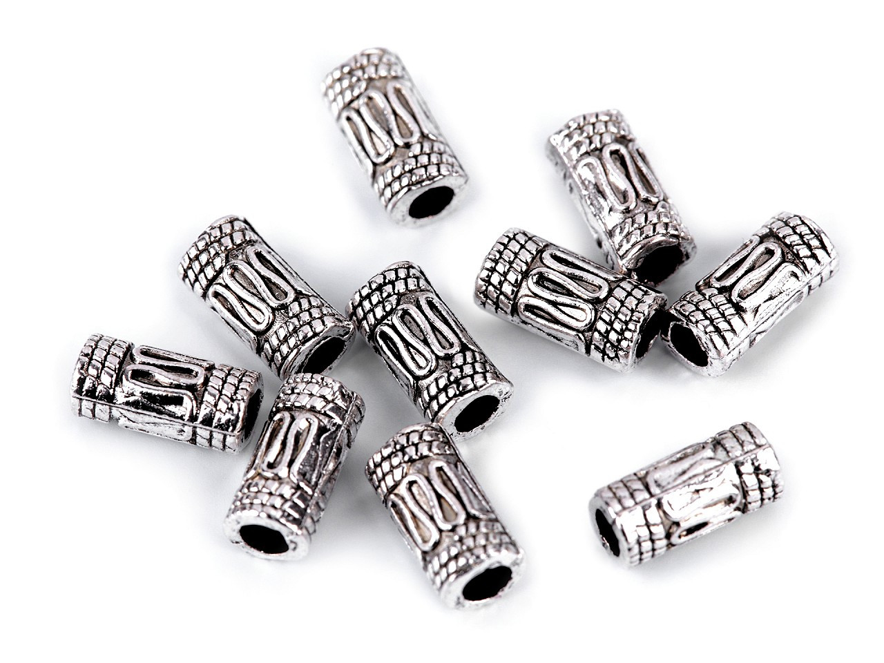 Kovový váleček zdobený ornamenty má široké možnosti využití. Je vhodný jako koncovka na oděvní šňůrky.