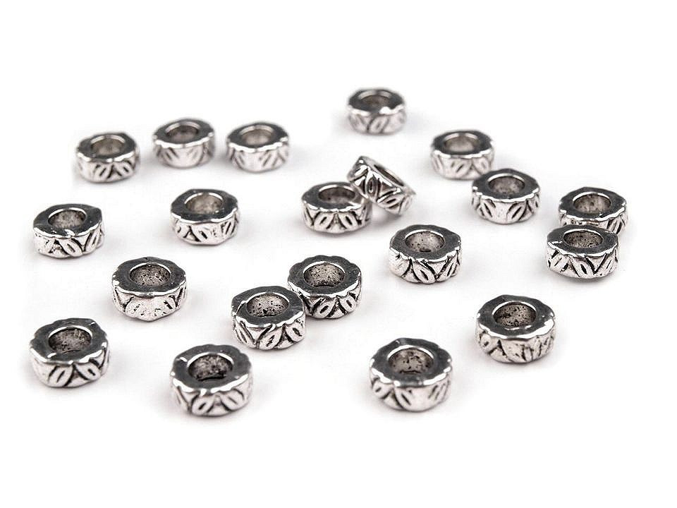 Kovový korálek s ornamentem můžete využít jako zajímavý a oživující prvek v široké škále výrobků. Je vhodný jako koncovka na oděvní šňůry.