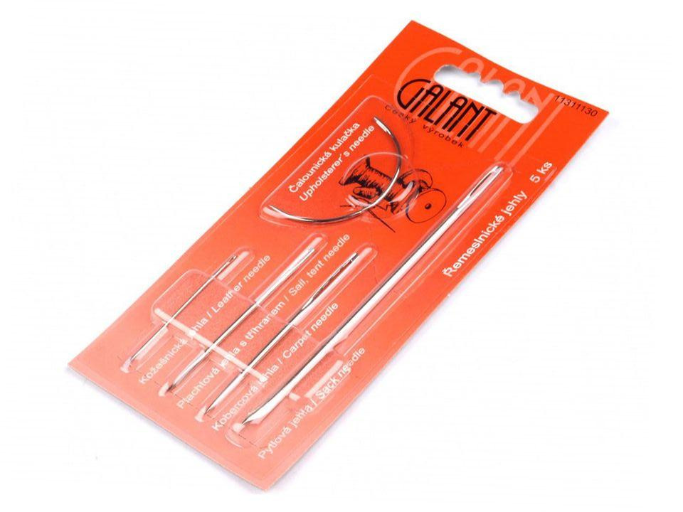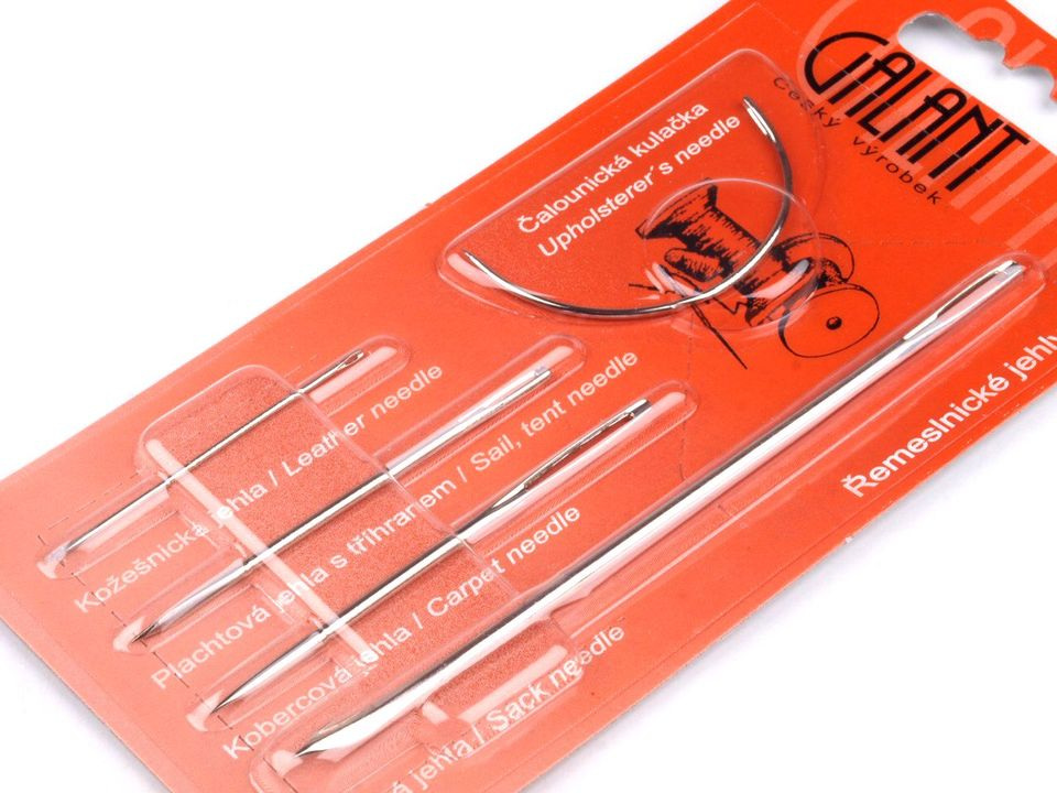 Plato obsahuje 1ks čalounická kulačka, 1ks kožešnická jehla, 1ks plachtová jehla, 1ks kobercová jehla, 1ks pytlová jehla.