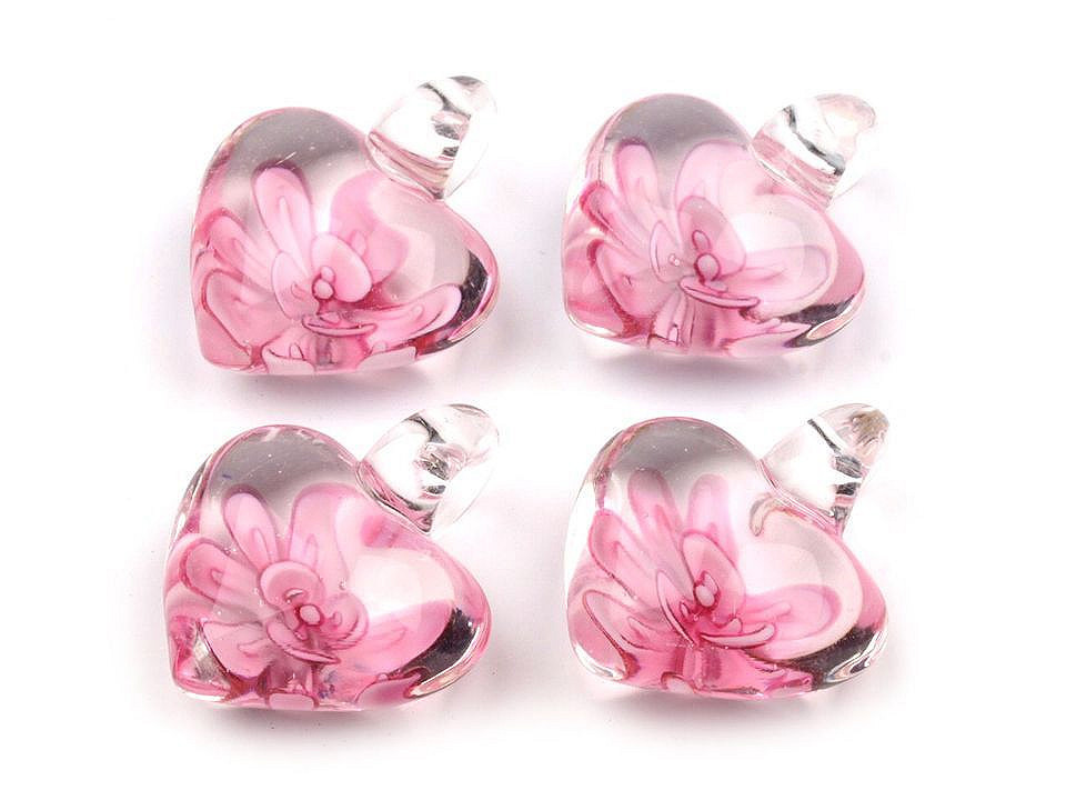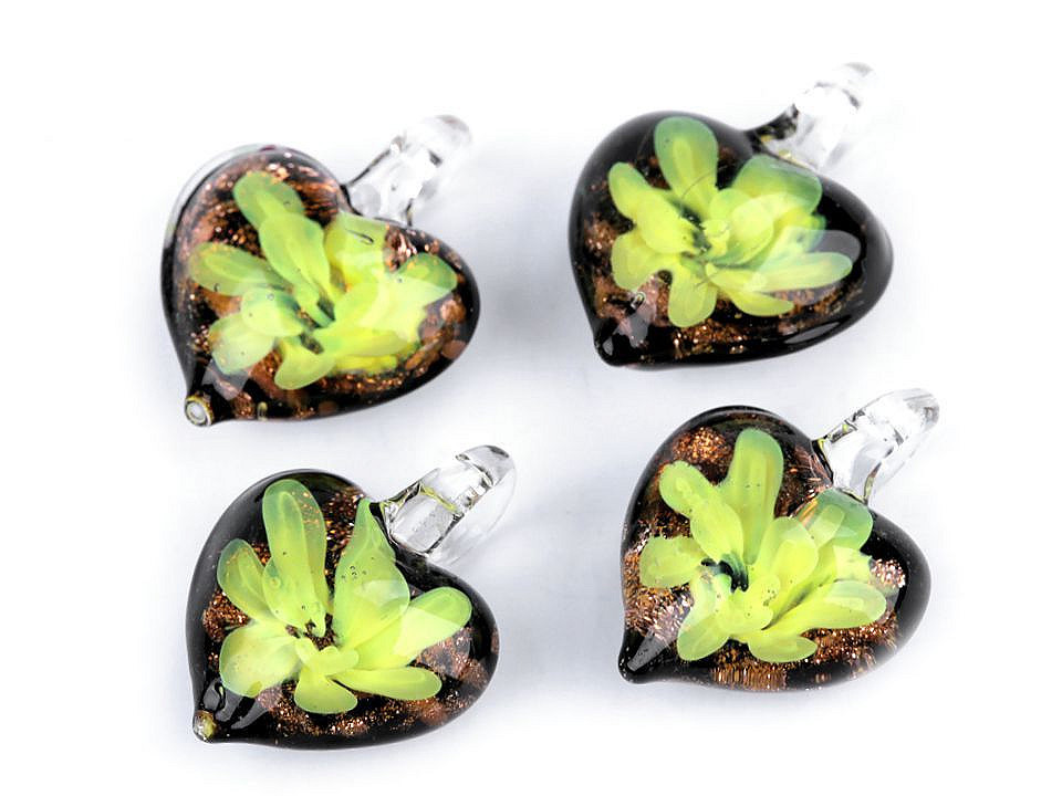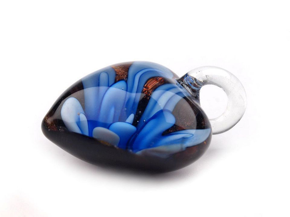 Designově originální přívěsky ve tvaru srdce. Každý kus je originál. Přívěsky jsou vyrobené ze skla, ve svých středech mají neopakovatelné vzory a probarvení. Na krk si je můžete pověsit na řetízek nebo kůži díky velkému praktickému oušku.