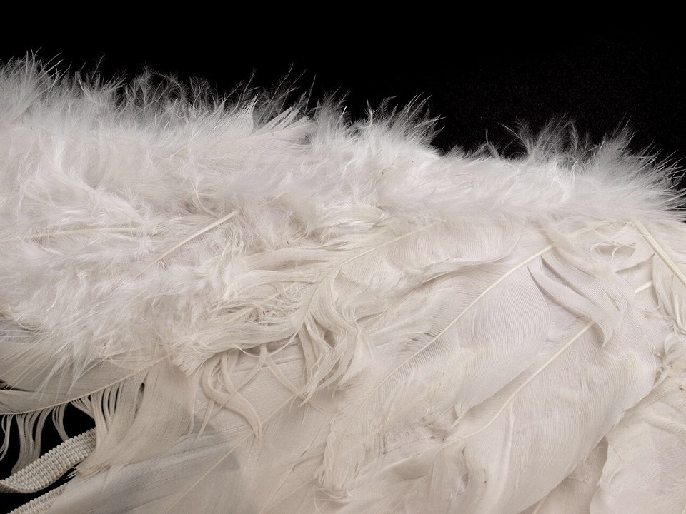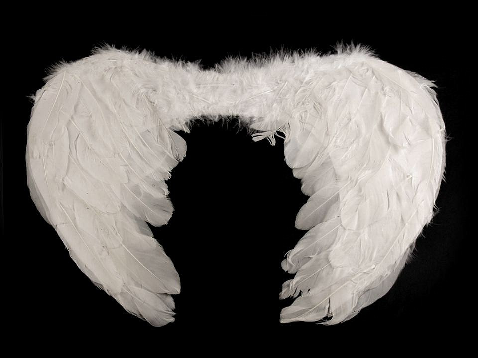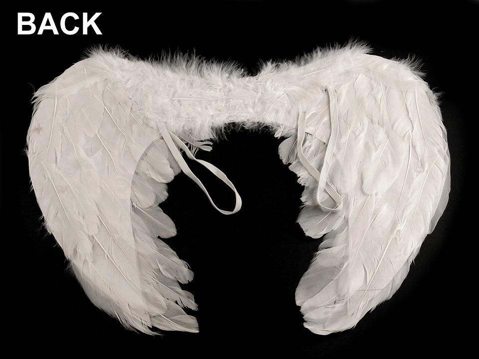 Andělská křídla jsou vyrobena z prachového peří a jsou spojena dohromady. Připevňují se pomocí dvou gumiček. Peří je z obou stran. Andělská křídla jsou nepostradatelným doplňkem každého správného andílka, který je ke svému kostýmu potřebuje, aby byla zaručena věrohodnost.