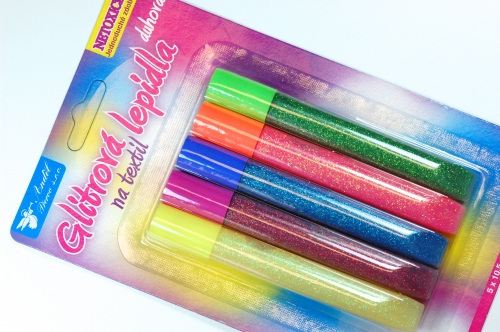 Glitrové lepidlo NA TEXTIL DUHOVÉ žluté, modré, růžové, oranžové, zelené po 10,5ml ÚŽASNÉ TŘPYTIVÉ ZDOBENÍ Bezpečné, netoxické, možno aplikovat na látky, trička, čepice, tašky, plátěné boty apod. NÁVOD: Ostraňte krytku a jemně vytlačte potřebné množství z tuby na textil. Nejdříve vyzkoušejte na malém vzorku. Do kapky lepidla lze zapouštět kamínky, korálky a perličky. Lepidlo schne při pokojové teplotě cca 48 hodin. Po použití tubu vždy pevně uzavřete krytkou. Doporučujeme pouze ruční praní. Nesušit v sušičce a na tepelných zdrojích.