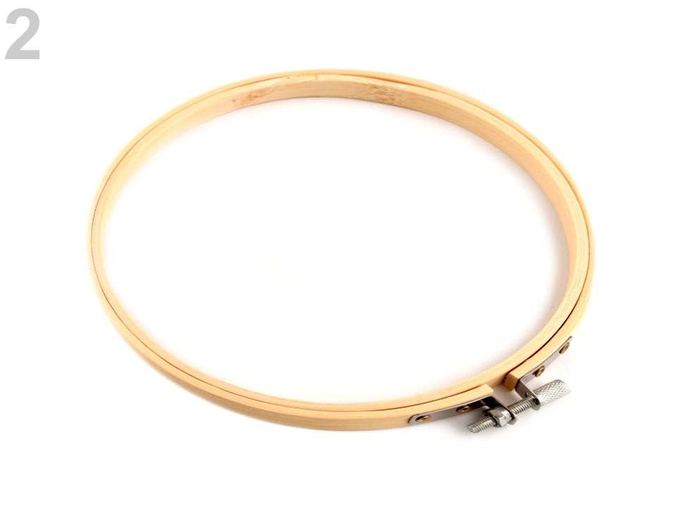Vyšívací kruh je vyrobený ze světlého dřeva. Je opatřen kovovým stahovacím šroubkem, pomocí něhož přichytneme vyšívací předlohu.