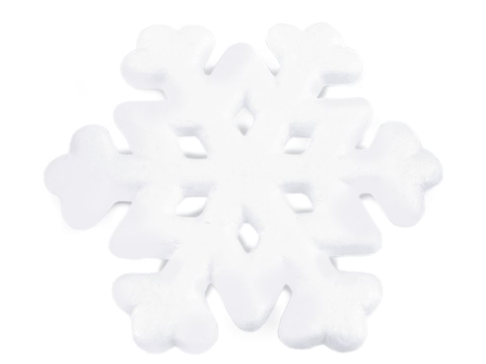 Polystyrenová vločka o průměru 19 cm. Bude vaším pomocníkem při tvorbě dekorací, které přes zimní měsíce dokonale dotvoří tu správnou atmosféru. Na vločku můžete nalepit či připíchnout látku, různé korálky, třpytky, různobarevné organzy – co jen vaše fantazie dokáže vymyslet.Složení: polystyren