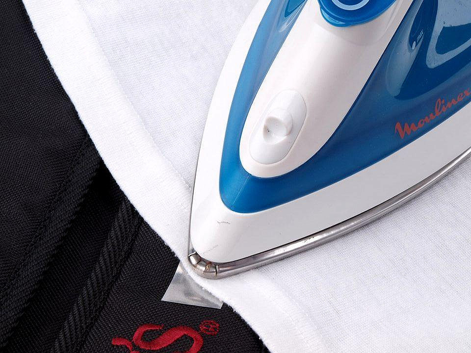 Doporučení: Zažehlujte bez napařování přes látku po dobu 30 sekund na 160 stupňů (tj. mezi stupni 2 - 3). Po schladnutí odstraňte folii, pak ještě jednou 10 sekund přežehlit. Perte nejdříve po 48 hodinách.