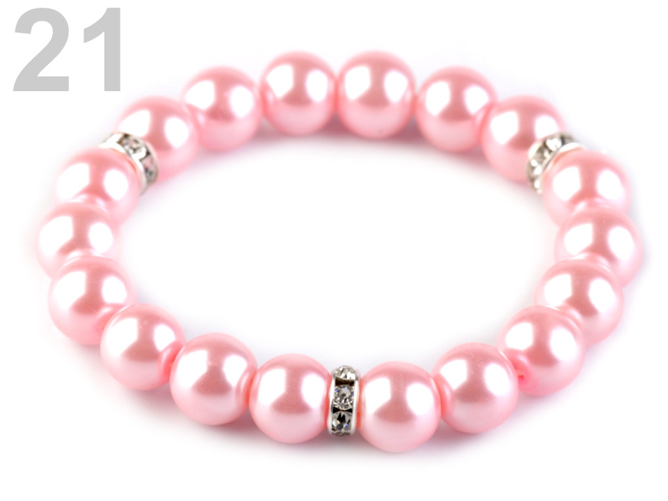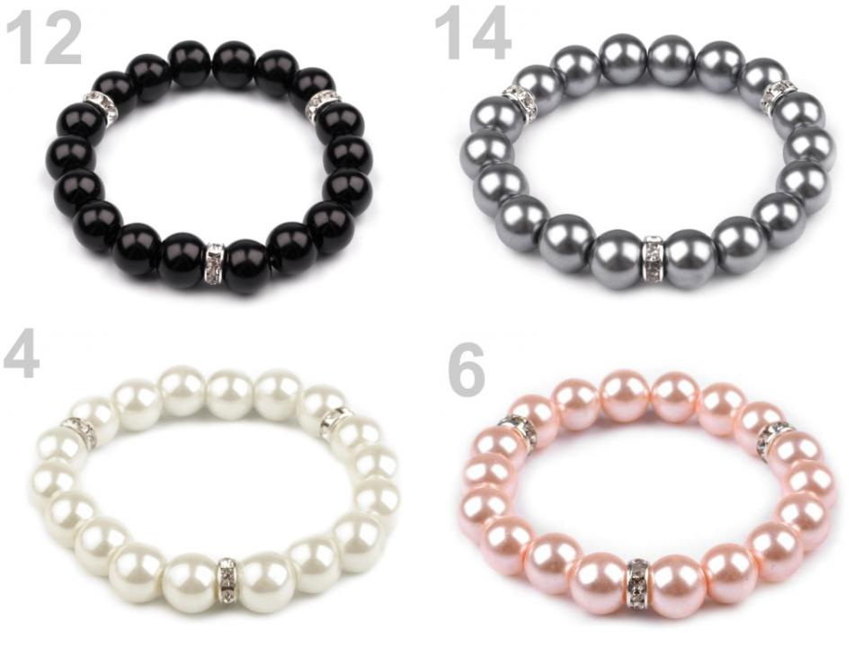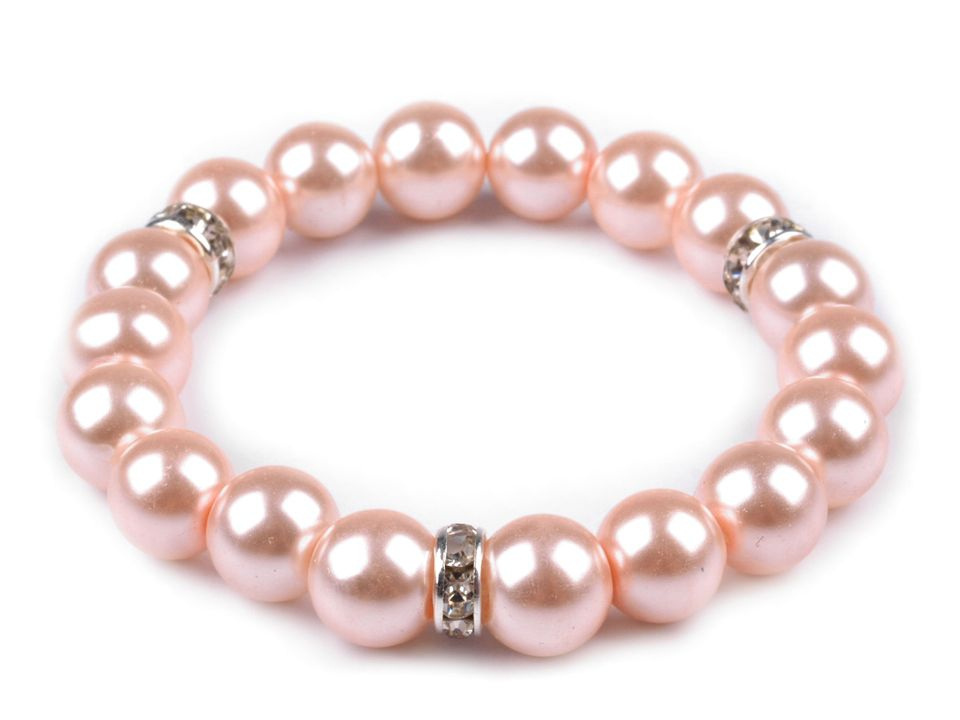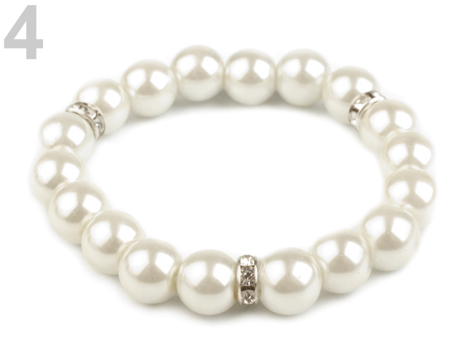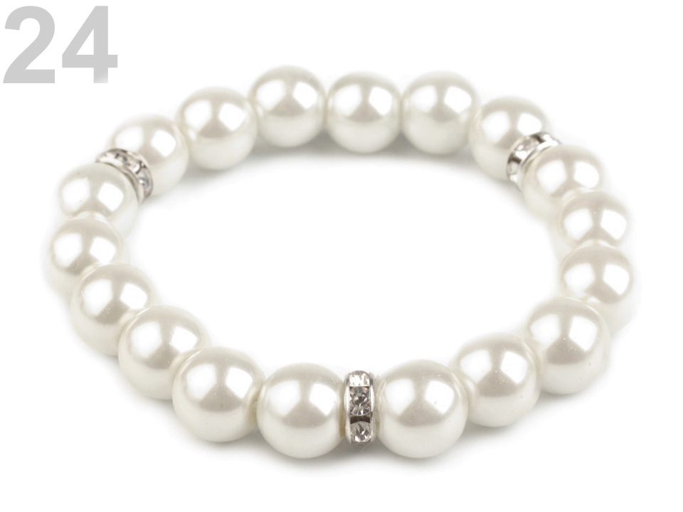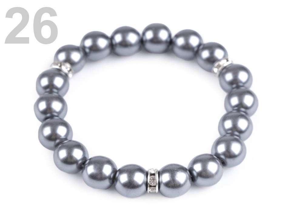 Elegantní náramek z voskovaných perel. Má působivý lesk, který je ještě umocněný vloženými rondelkami se třpytivými kamínky.