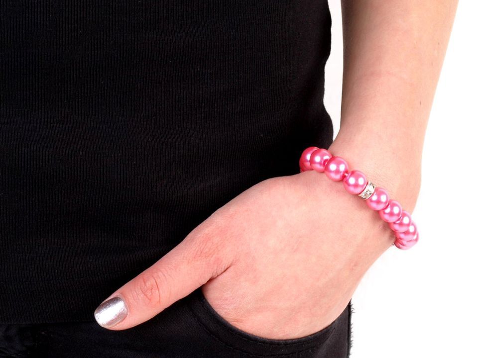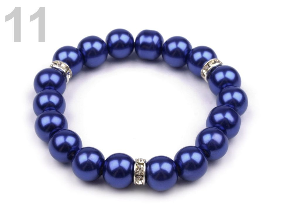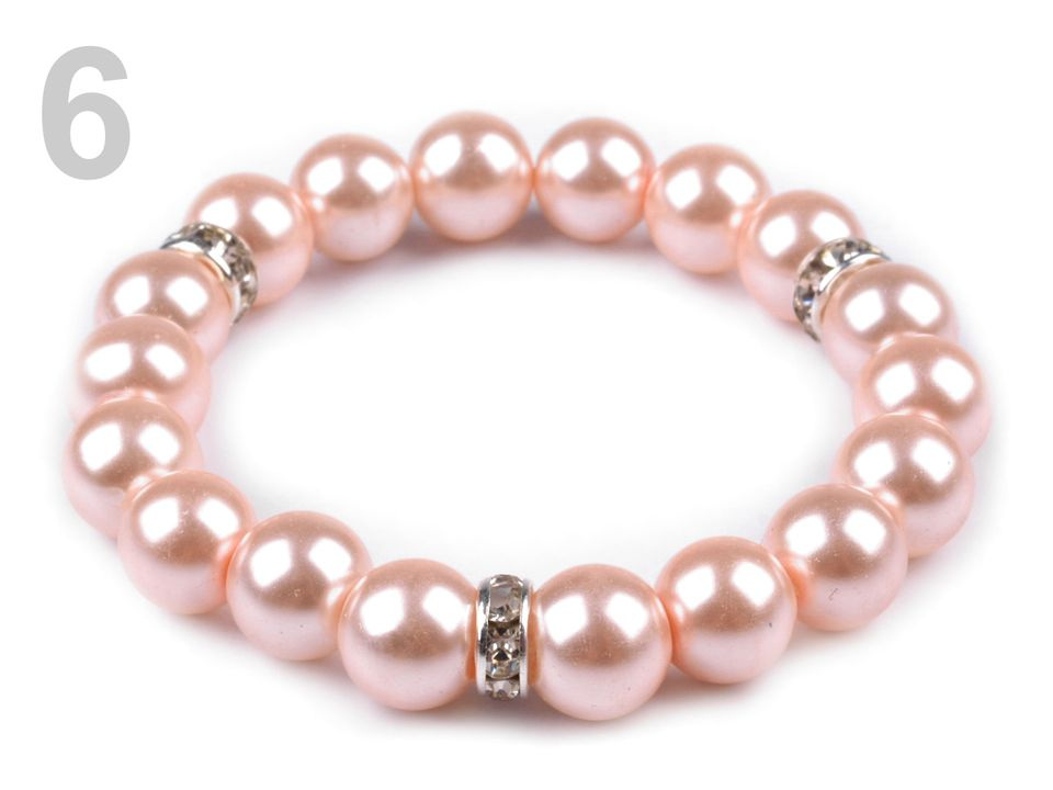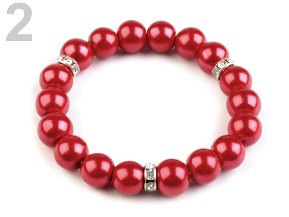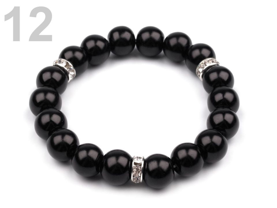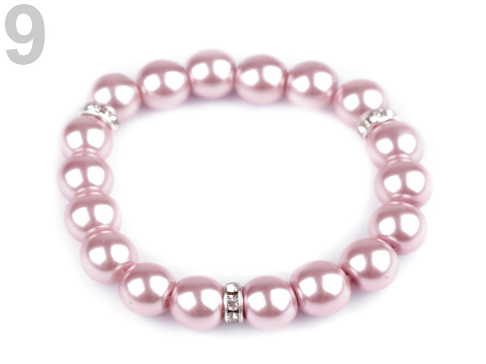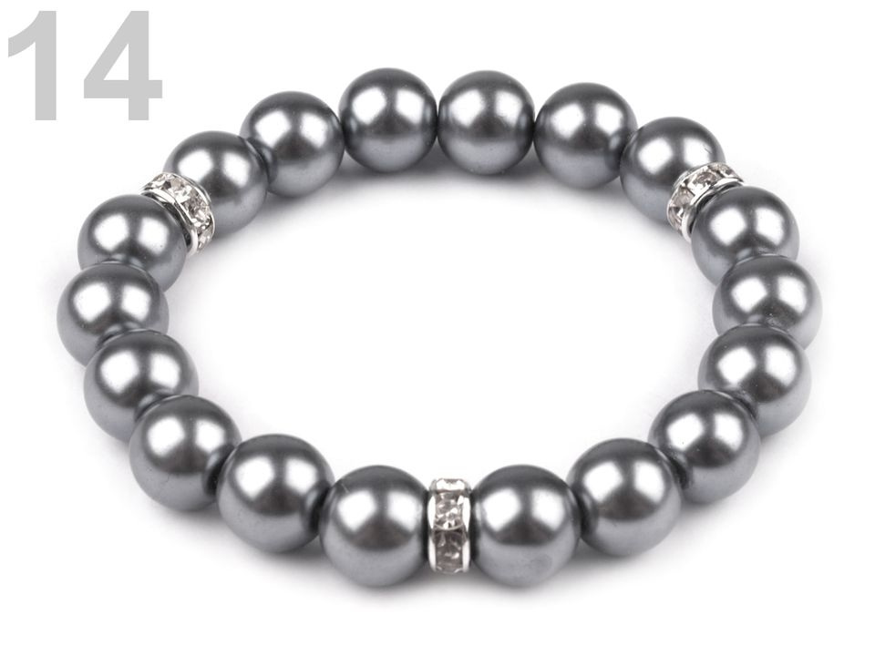 Elegantní náramek z voskovaných perel. Má působivý lesk, který je ještě umocněný vloženými rondelkami se třpytivými kamínky.