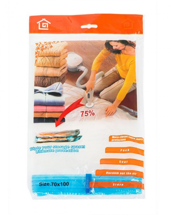 Úložný vak s odsáváním efektně uspoří místo ve vaší skříni. Ušetří až 75% místa. Je transparentní, věci budete mít přehledně uložené. Hodí se pro úschovu oblečení, lůžkovin, hraček a různého textilu.