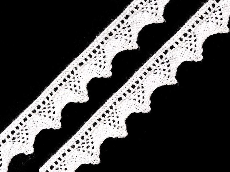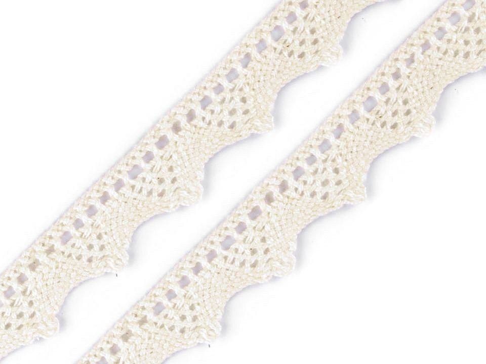Použití: Krajku můžete použít na ozdobení lemů ubrusů, deček, polštářů a dalších bytových doplňků. Je vhodná i na oděvy, například na halenky nebo sukně.