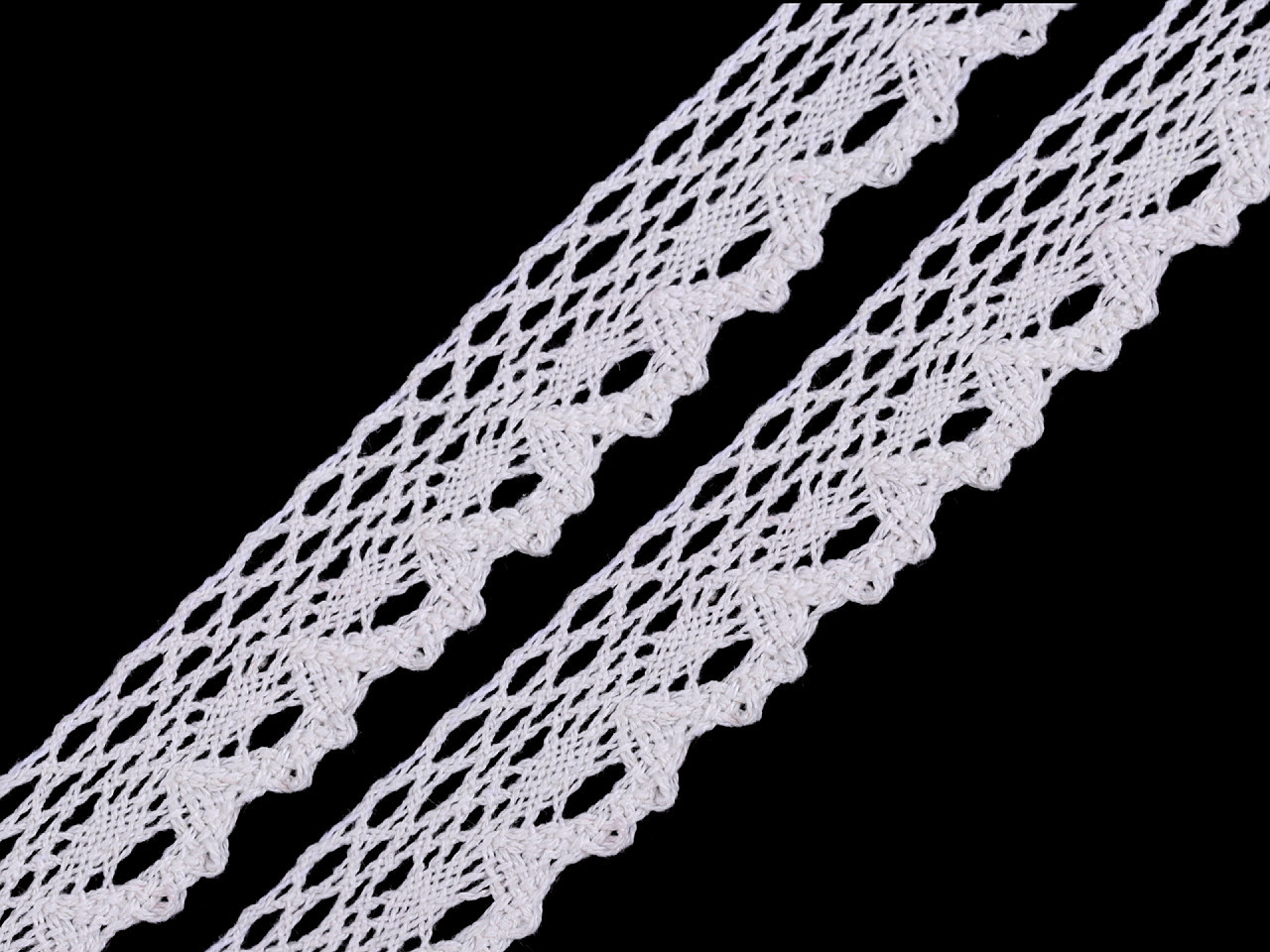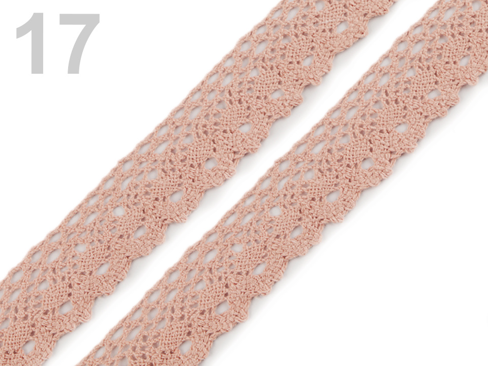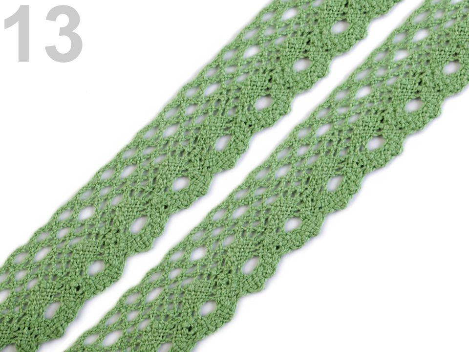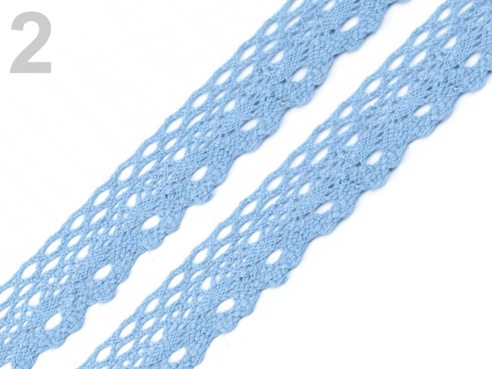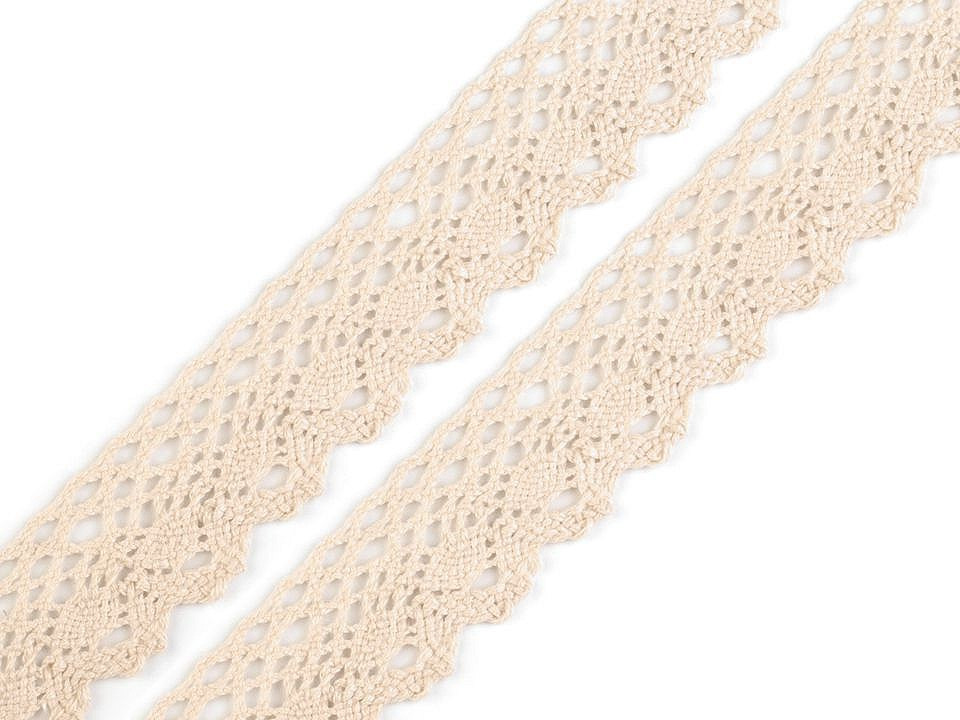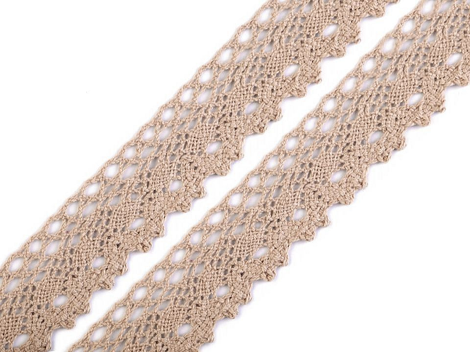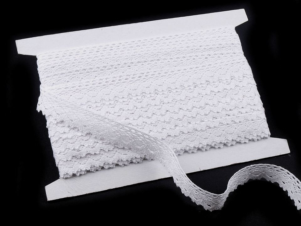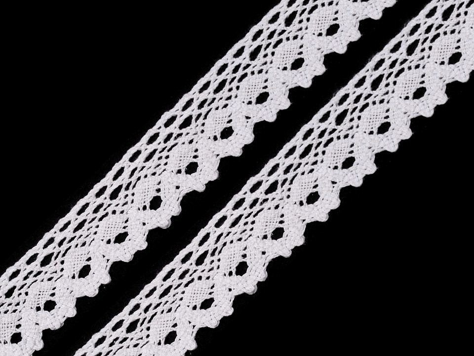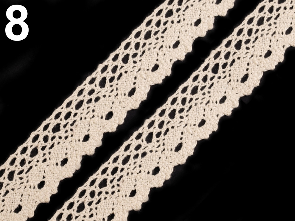 Bavlněná paličkovaná krajka je v horní části zdobena malými očky a zakončuje ji esovitý vzor.