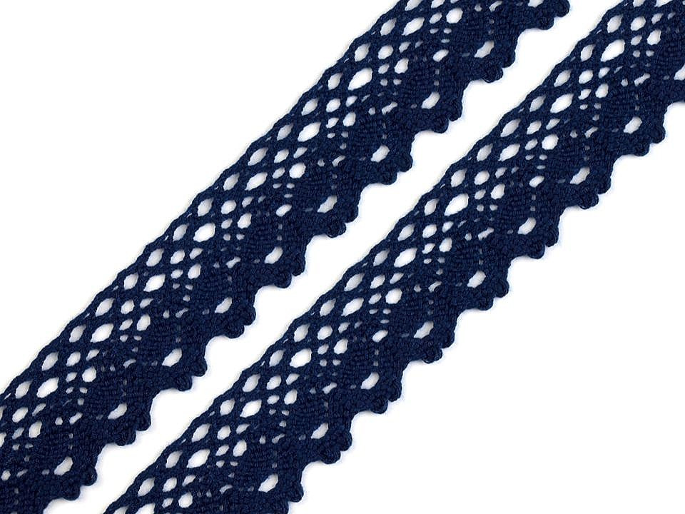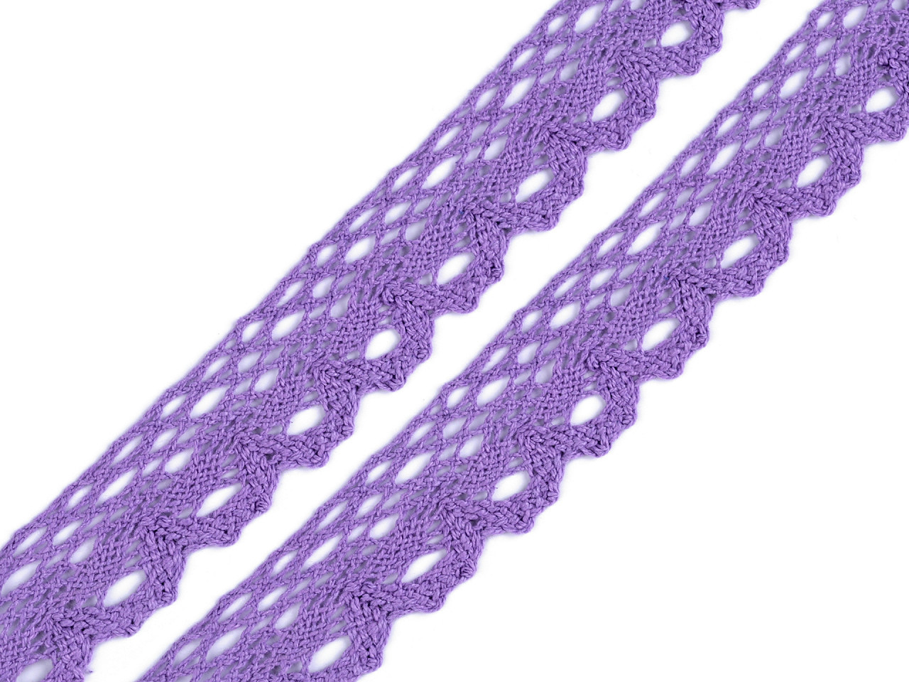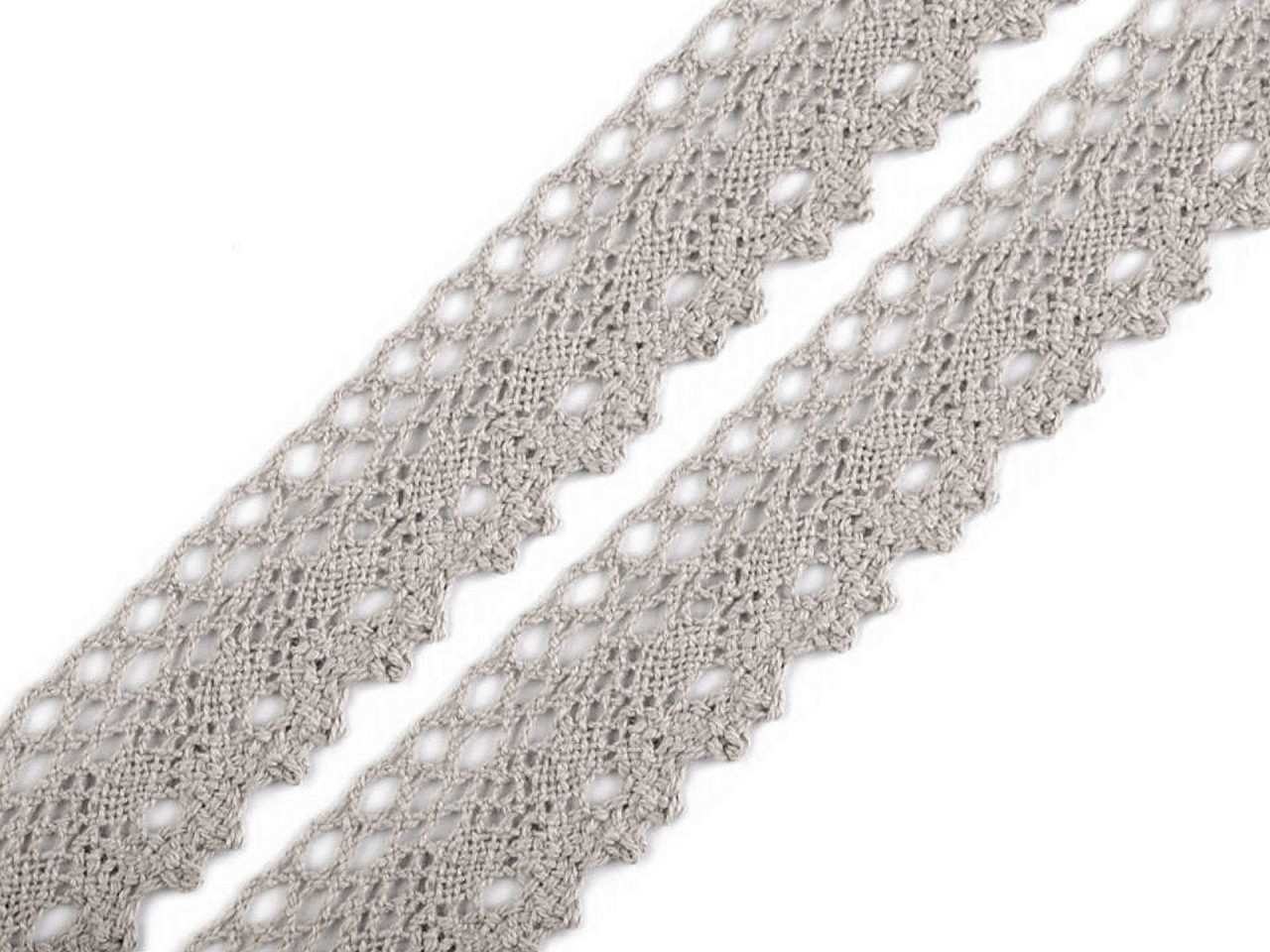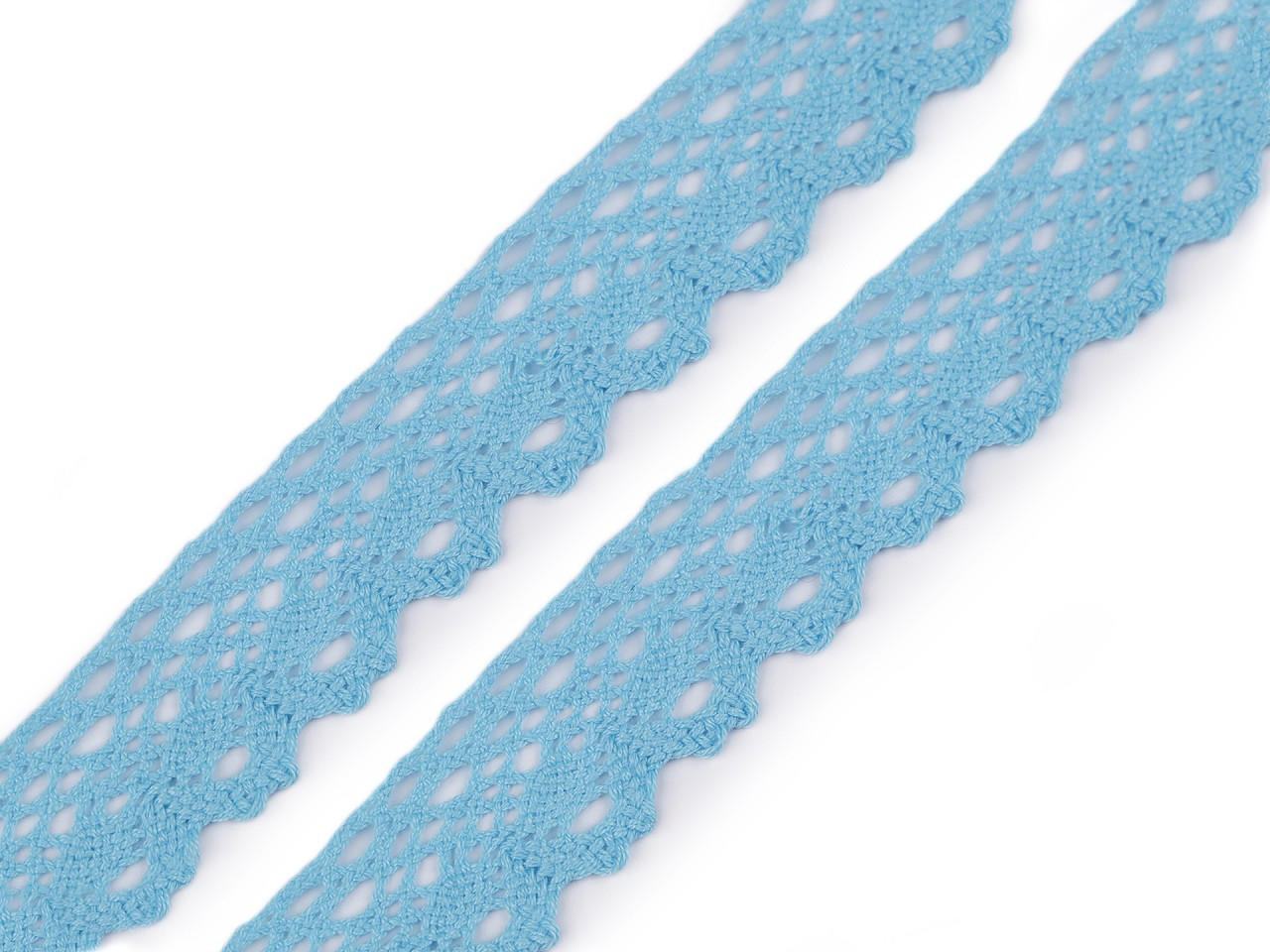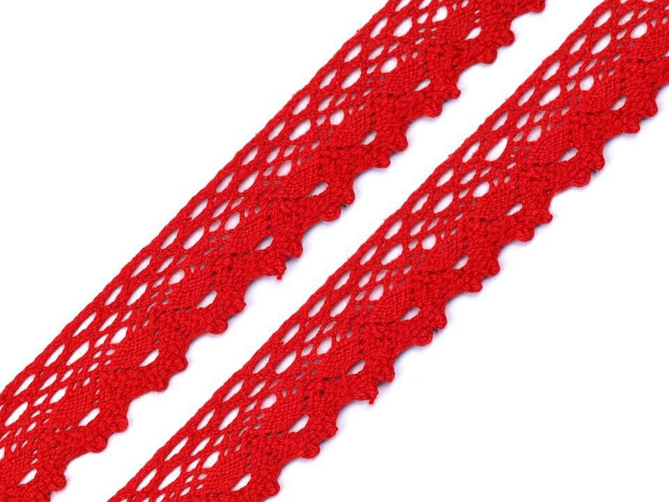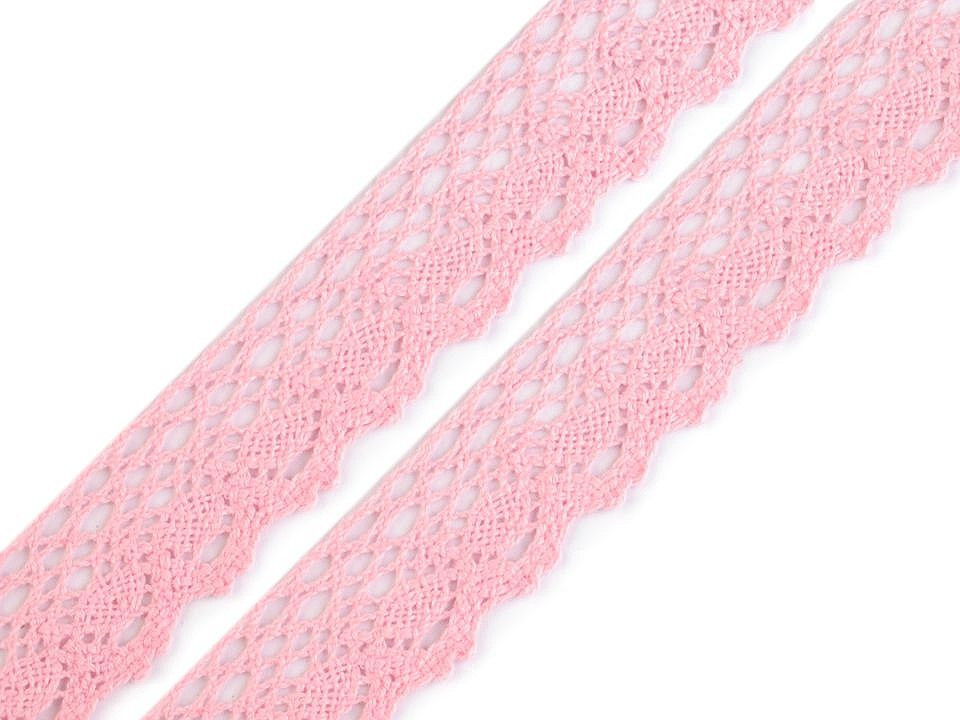 Bavlněná paličkovaná krajka je v horní části zdobena malými očky a zakončuje ji esovitý vzor.