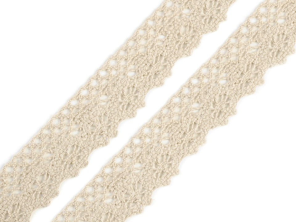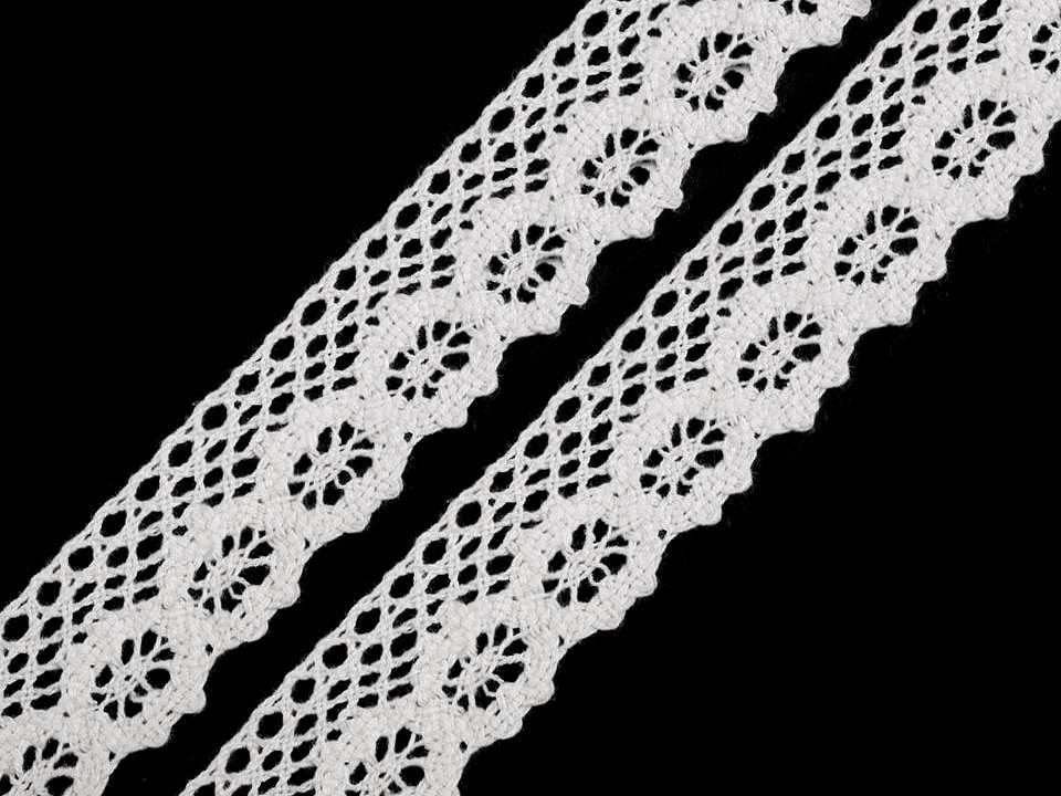 Bavlněná paličkovaná krajka je originální. Na jedné straně je zakončena zajímavými kolečky.