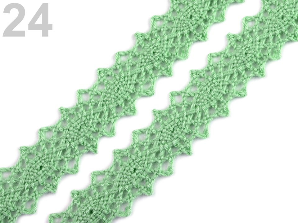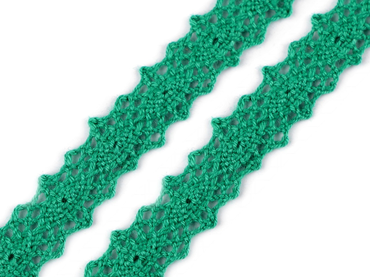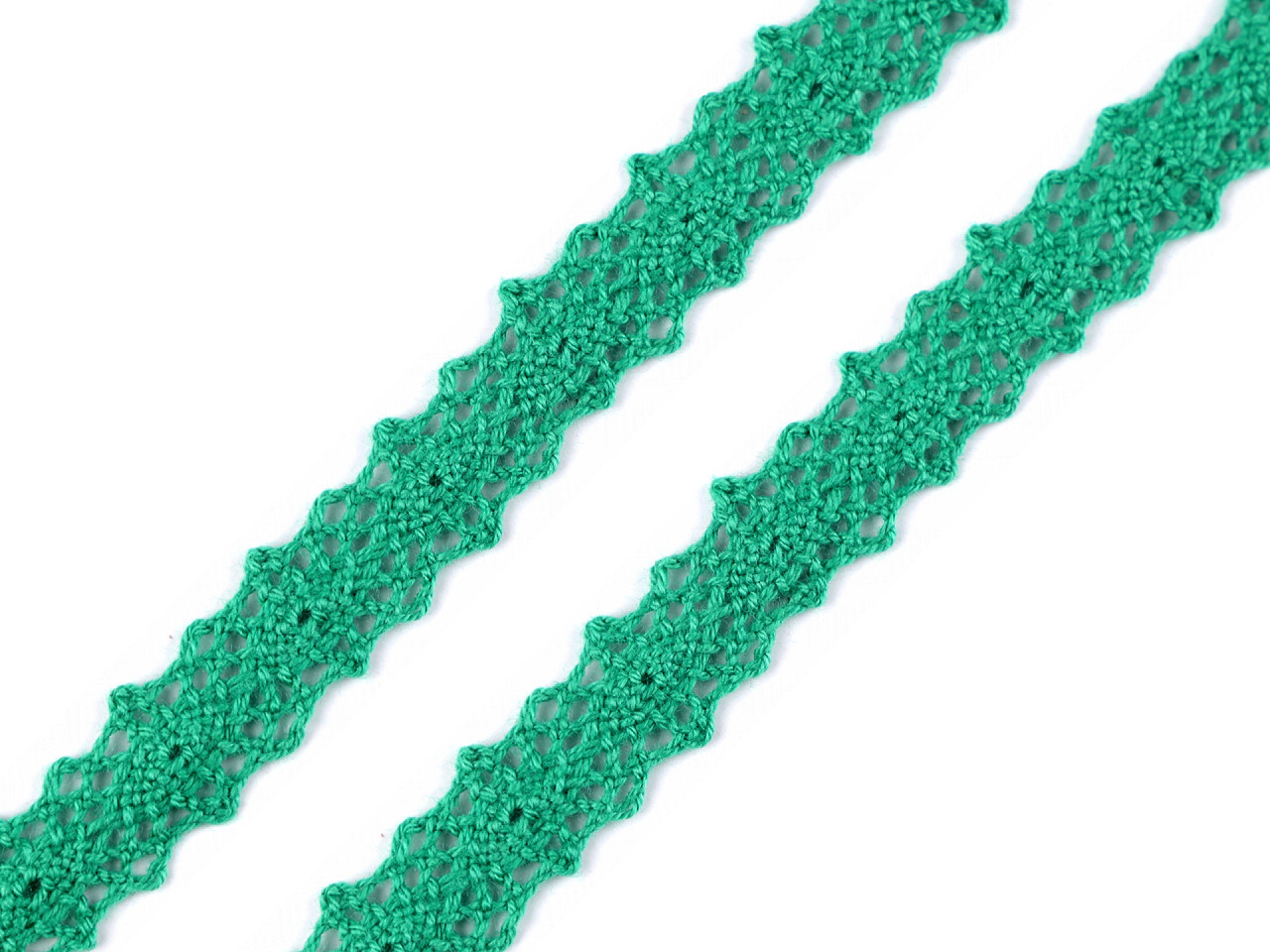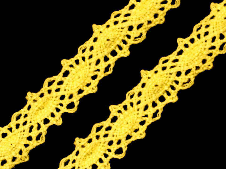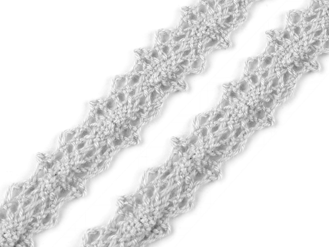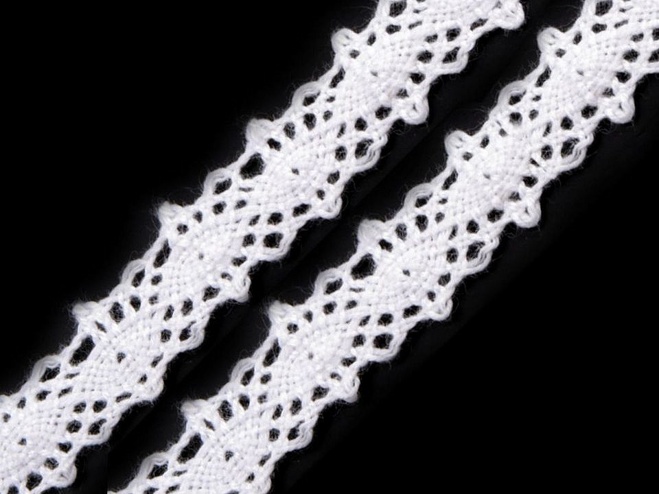 Paličkovaná krajka se zajímavým vzorem je vyrobena z bavlny.