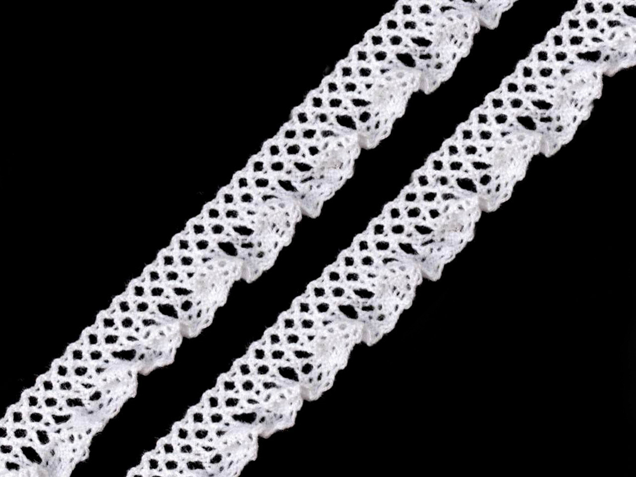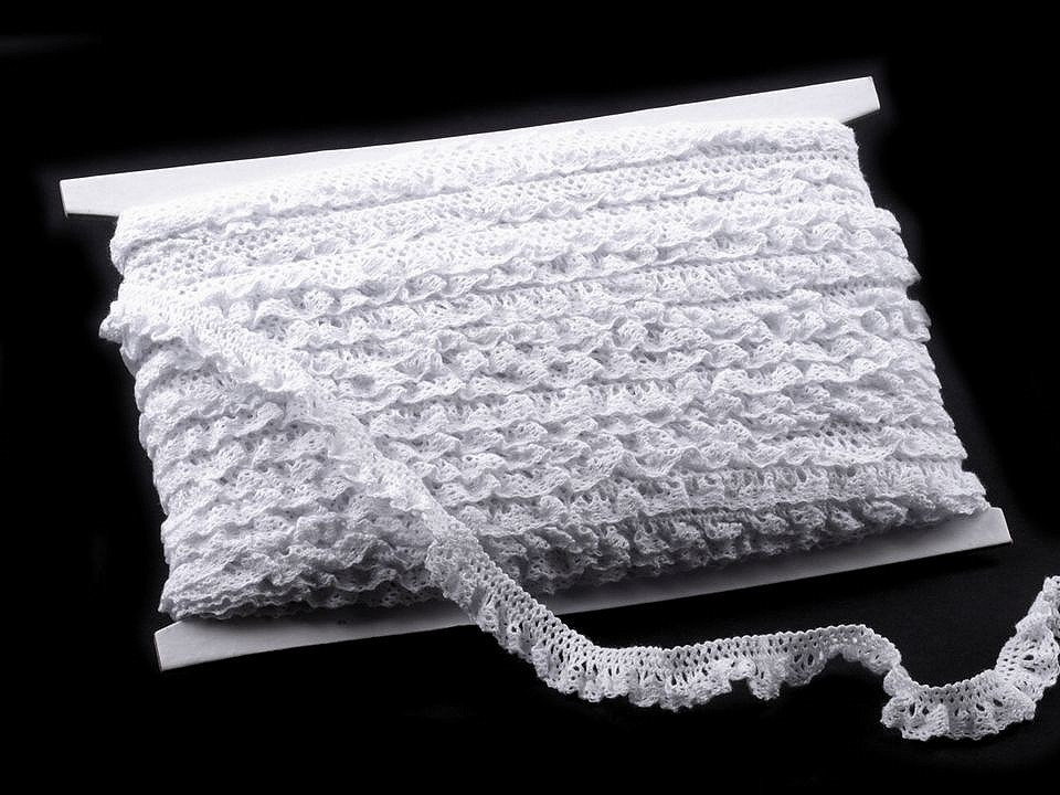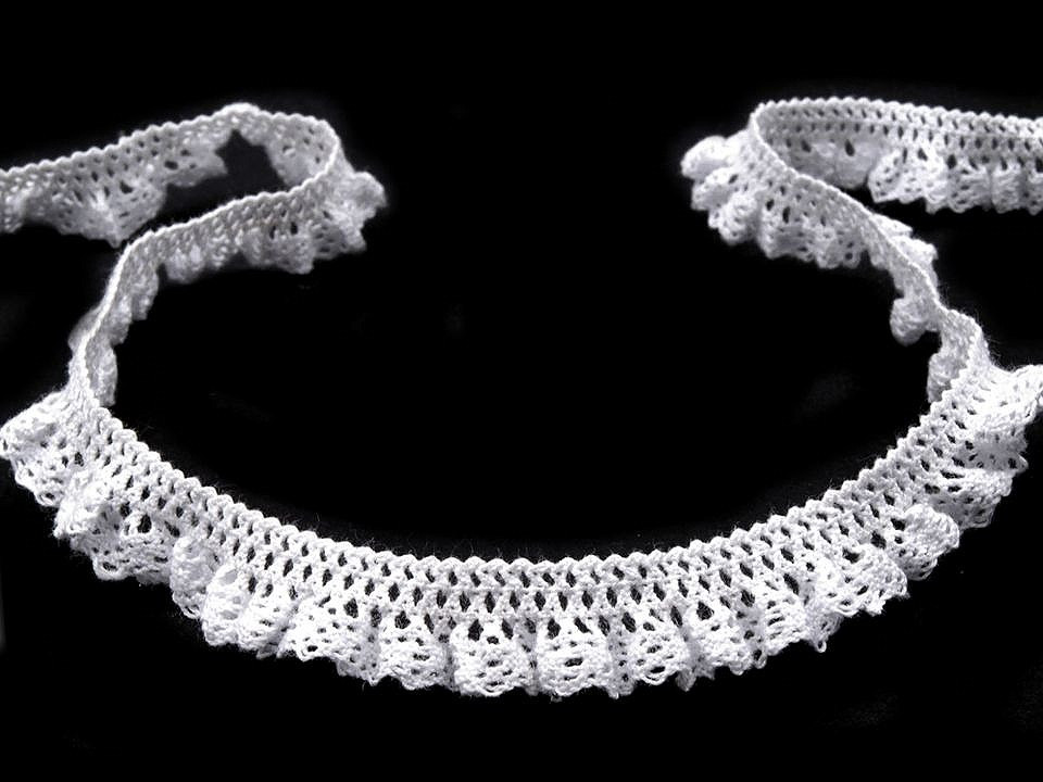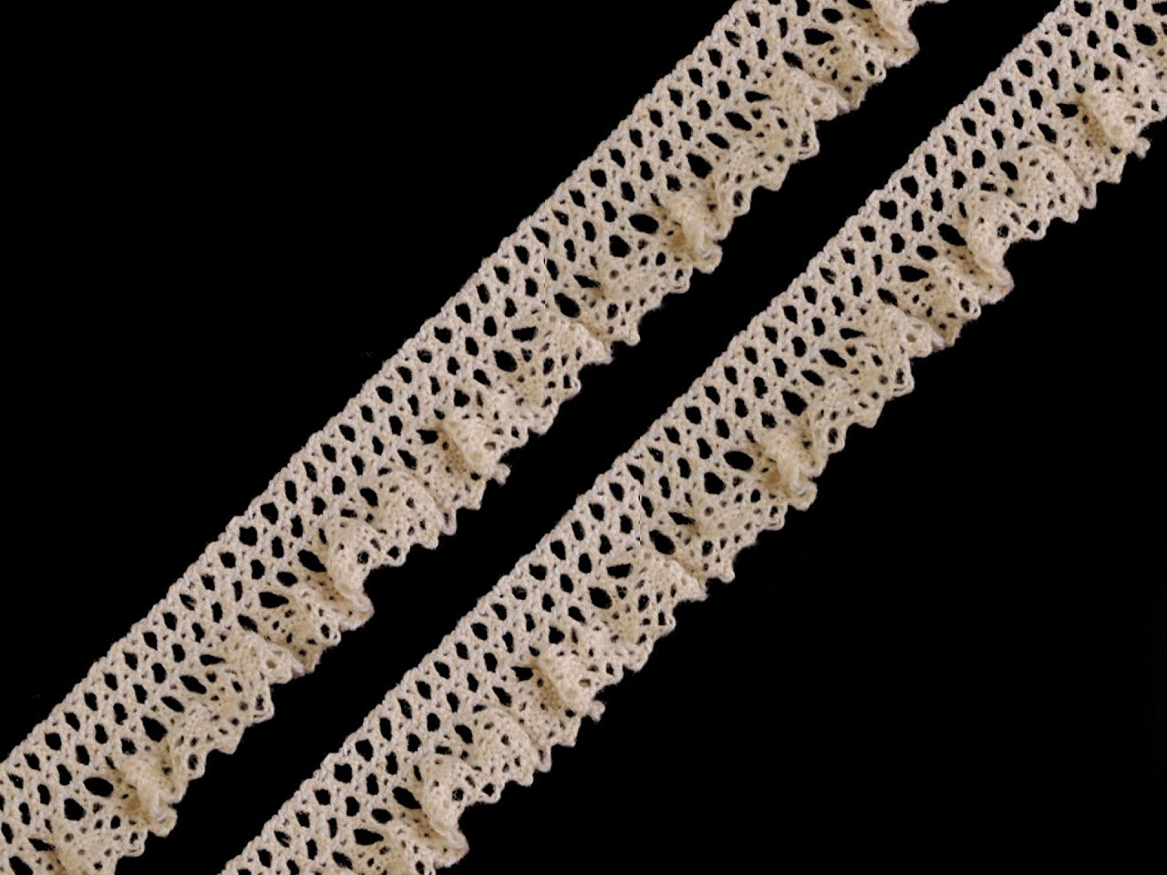 Tato krajka je paličkována tak, že vytváří slušivé volánky. Můžete ji použít na zvýraznění lemu šatů nebo jako elegantní límeček na halenku. Ani ozdobou na blahopřání s ní neuděláte chybu.