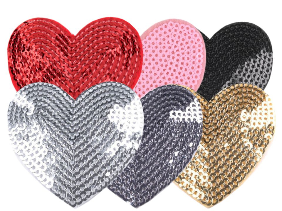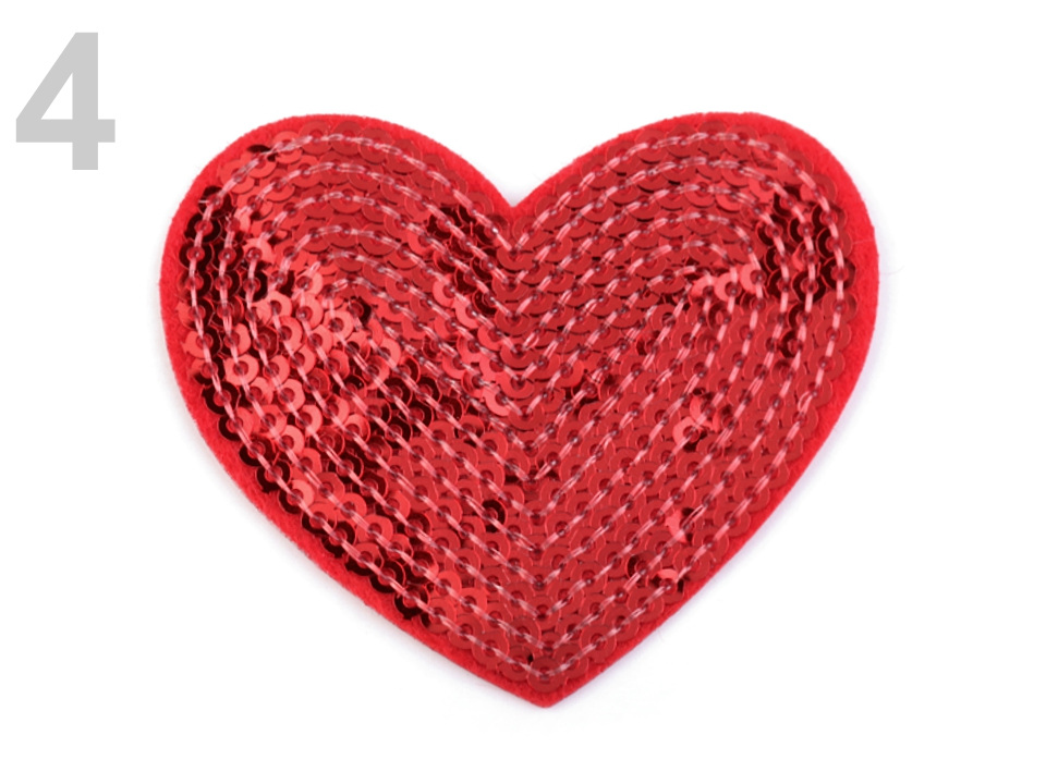 Nažehlovačka srdce s flitry - 4 červená jahoda