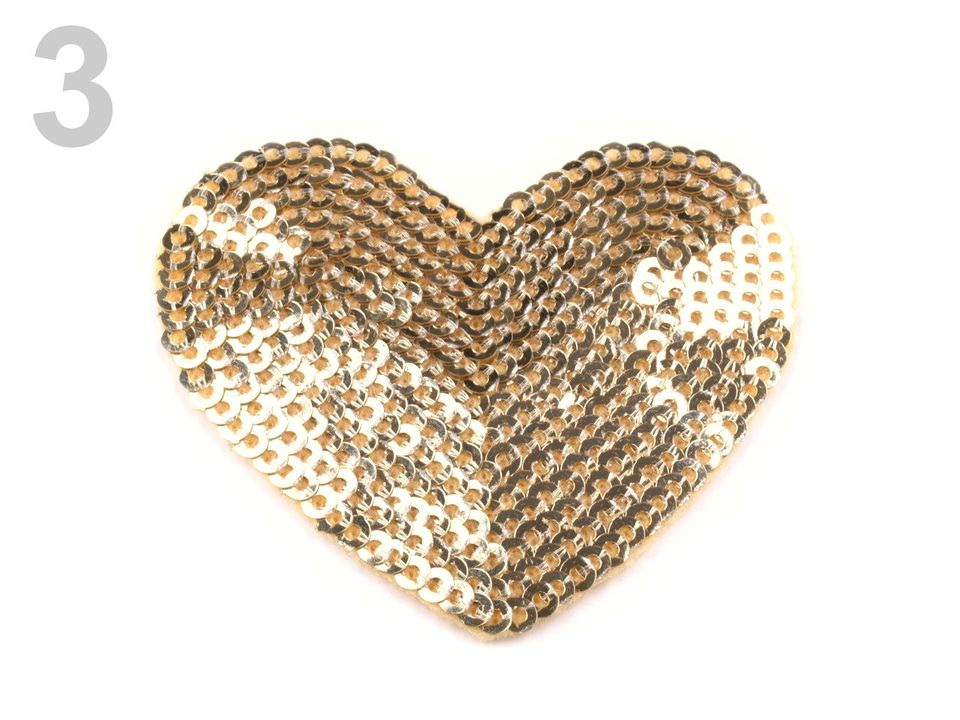 Nažehlovačka srdce s flitry - 3 zlatá sv.