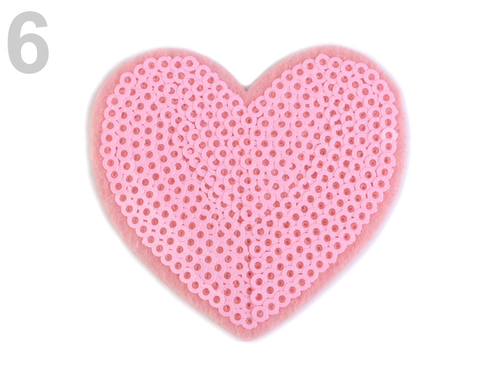 Nažehlovačka srdce s flitry - 6 růžová sv.