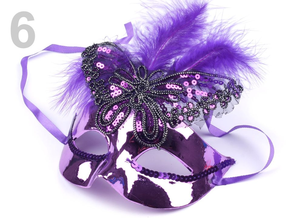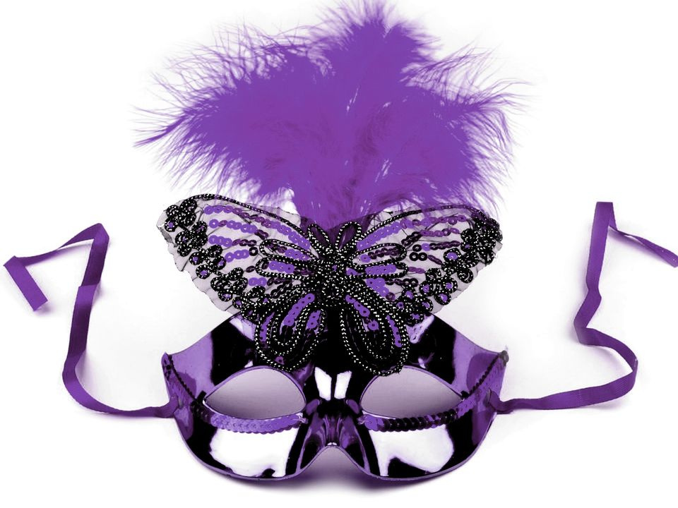Přeneste se s tajemnou maskou na benátský karneval. Dominantou masky je motýl s flitry a peřím.
