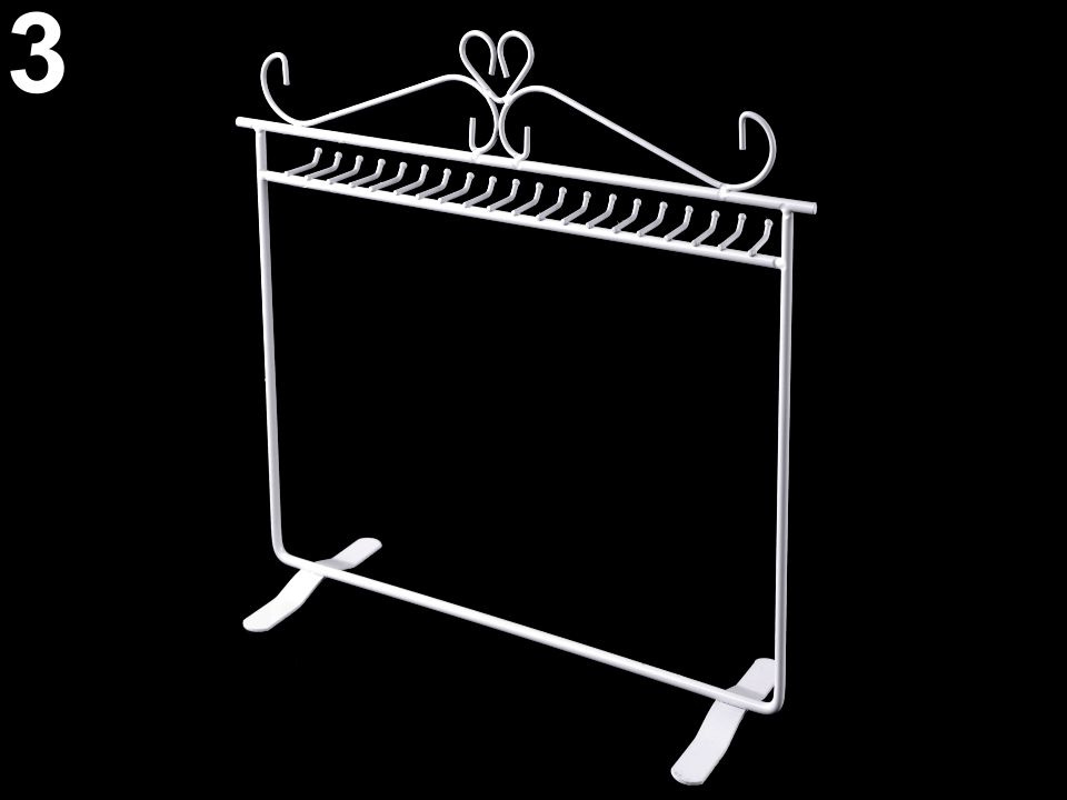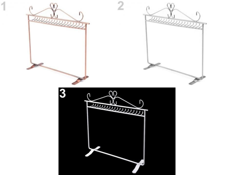 Šperkový stojan je určený pro zavěšení náhrdelníků, korálků, přívěsků na řetízku a podobných typů bižuterie. Je velice elegantní, stane se stylovou a praktickou dekorací.