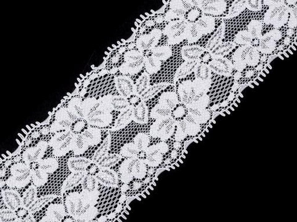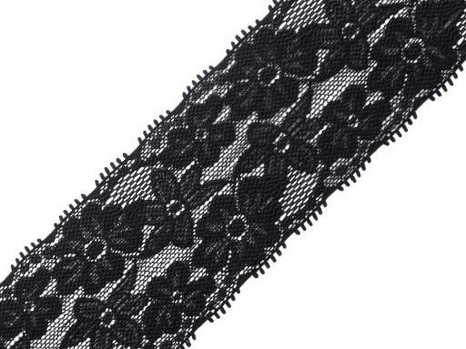 Elastickou krajku zdobí design s jemnými květy.