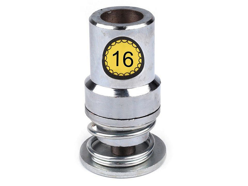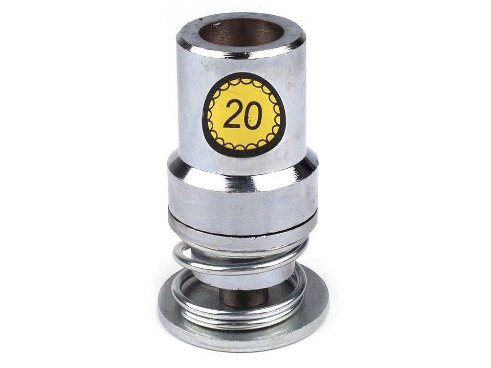 Piston na potahování knoflíků. Každý je označený číslem, které udává velikost knoflíku, která se do pistonu vkládá. Např. pistonem s číslem 20 potáhnete knoflíky velikosti 20.