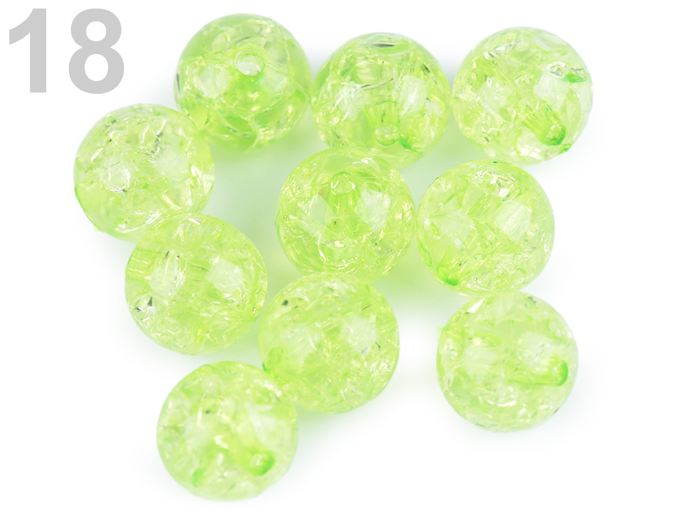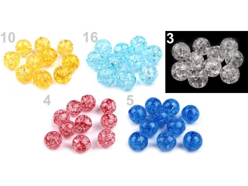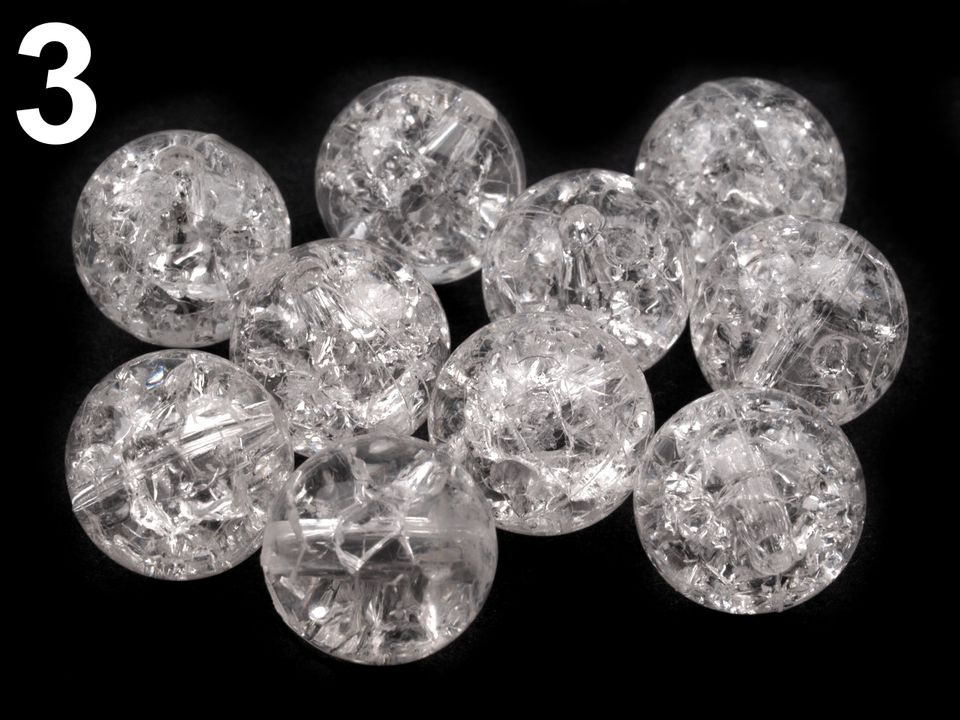 Svým použitím nesmírně variabilní plastové korálky s efektem kraklé, tedy prasklin. Mají všechny výhody plastových korálků - jsou lehoučké, mají dostatečně velký průvlek, aby jimi prošly i stužky nebo voskované šňůry. Našim fotografkám se fotografie velmi povedly, ale věřte, že ve skutečnosti jsou korálky ještě zajímavější.