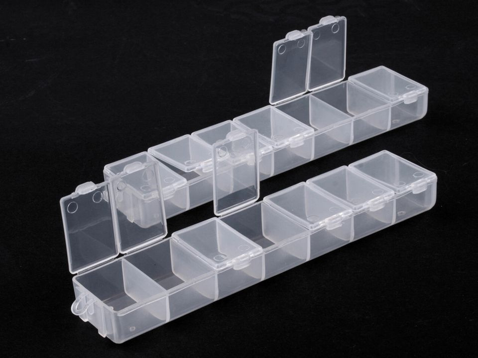 V jedné sadě jsou spojeny dva zásobníky, každý po 7 okýnkách, do jednoho okýnka se vejde obsah o 8 ml.