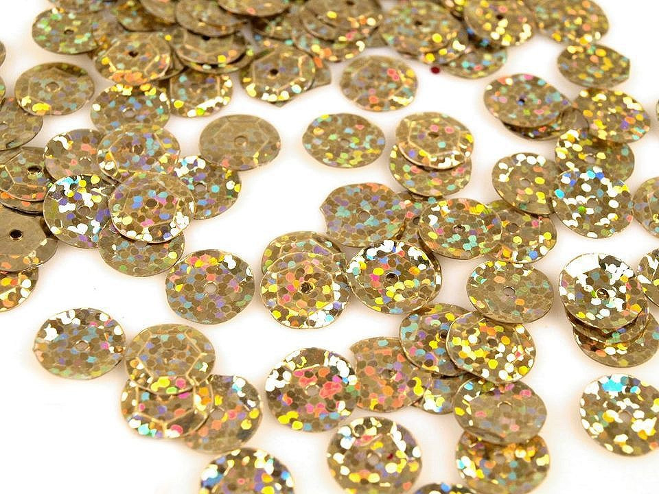 Lomené flitry vypadají na šatech vypadají. Na rozdíl od hladkých jsou tyto flitry prolamovány, některé navíc ještě v hologramové úpravě. Při každém pohybu se třpytí a upoutávají pozornost. Jde o sortiment dlouhodobě zákazníky velmi oblíbený a opakovaně kupovaný.
