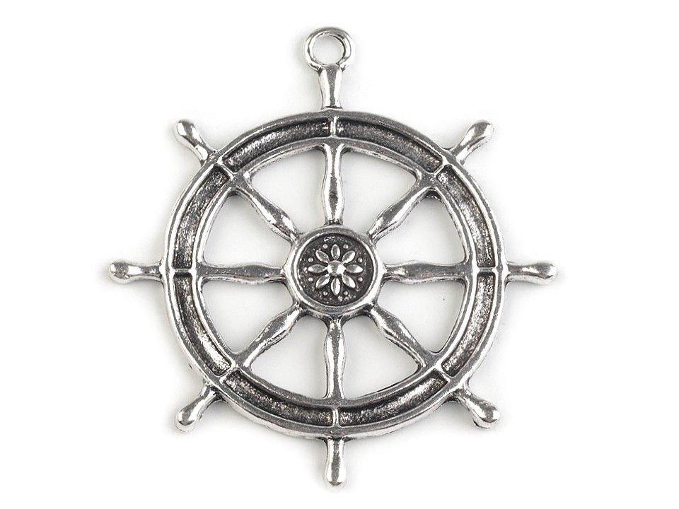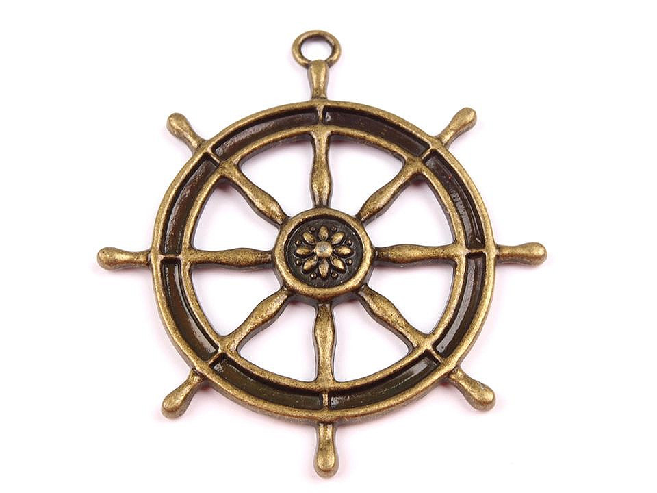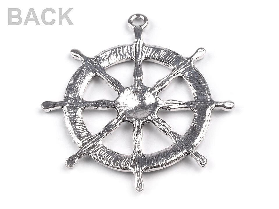 Větší kovový přívěsek ve tvaru kormidla doplní skvěle oblíbený námořnický styl.