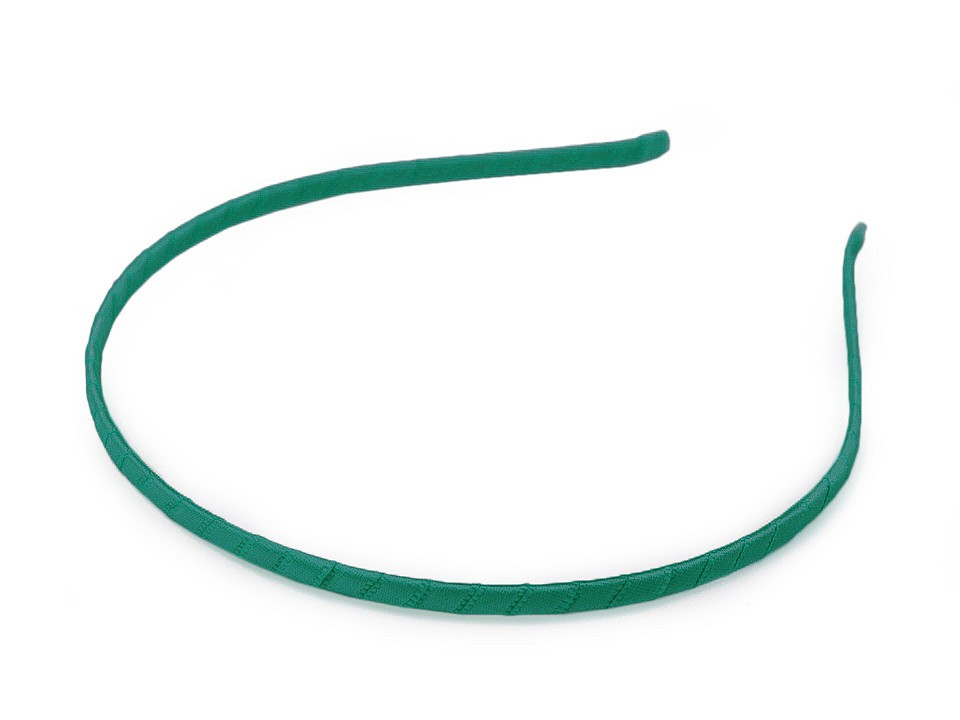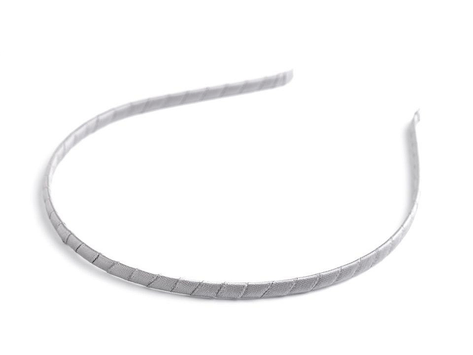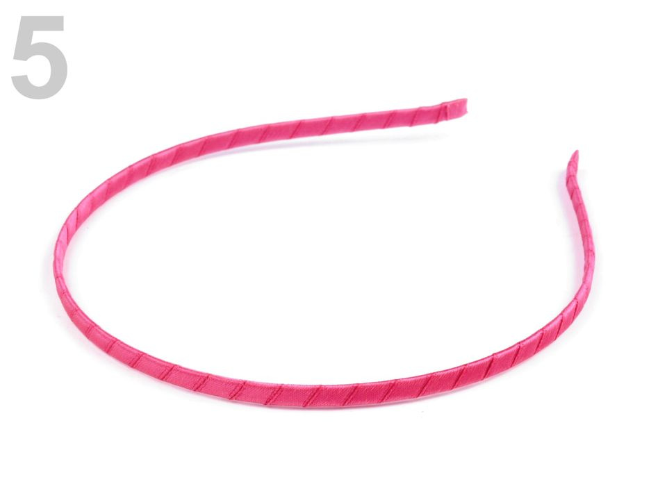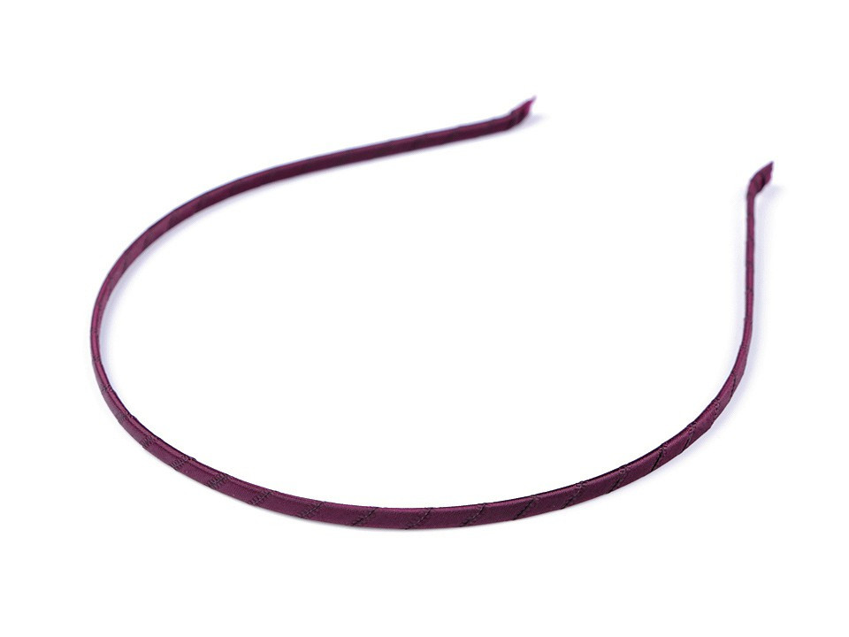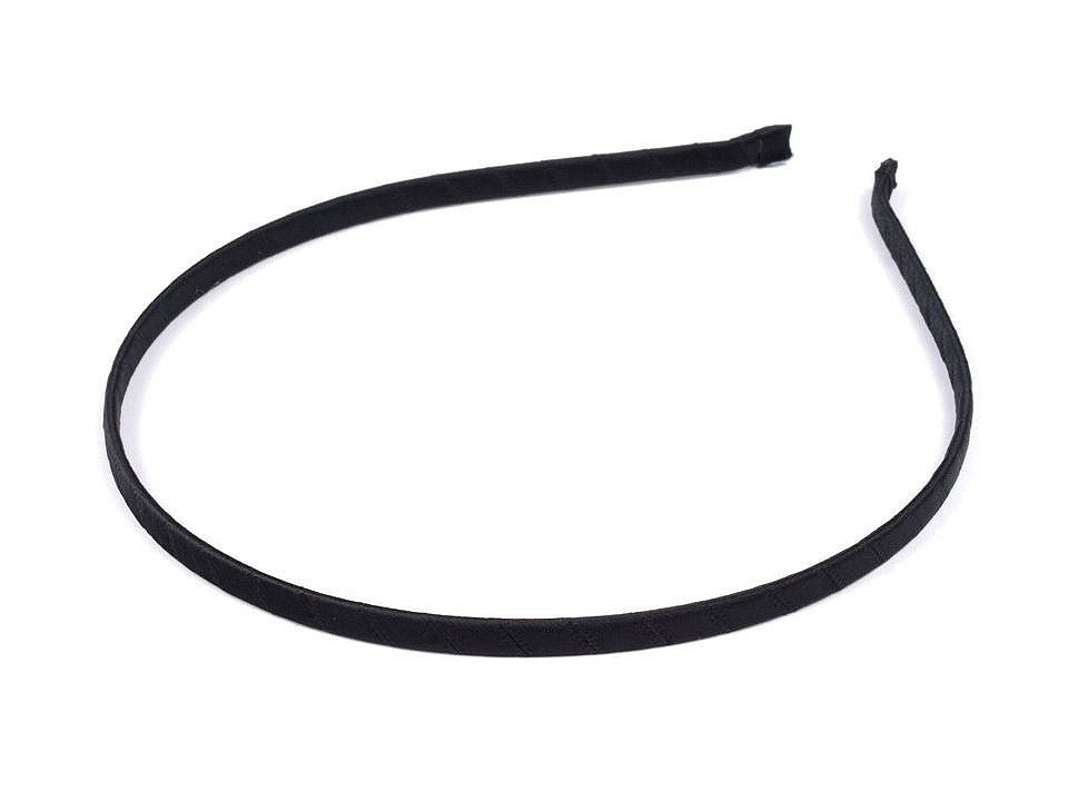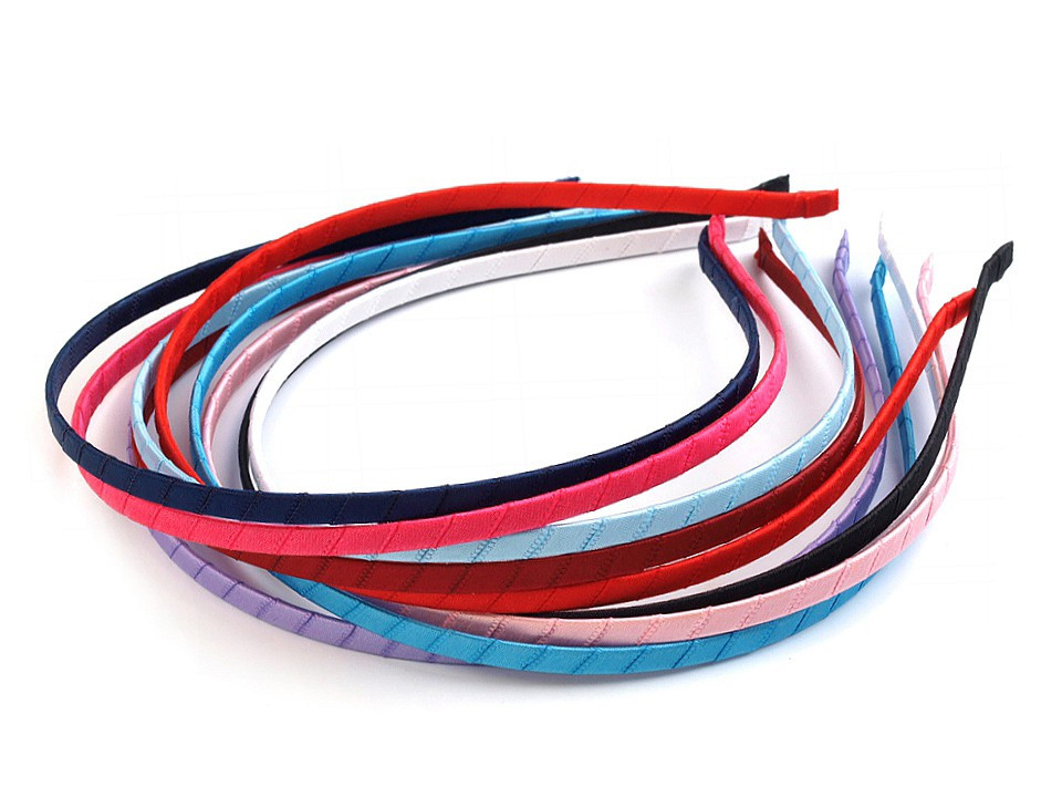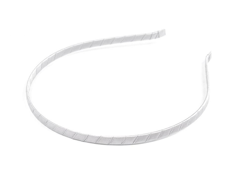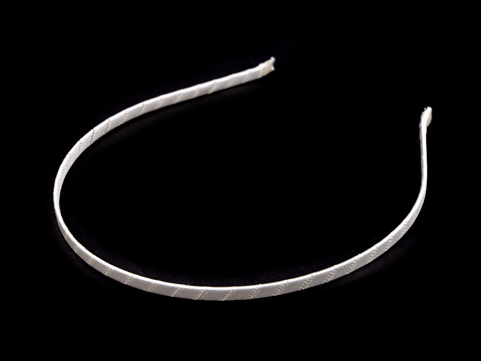 Šíře 0,5 cm. Kovový korpus čelenky je po celé délce pevně omotán saténovou látkou.