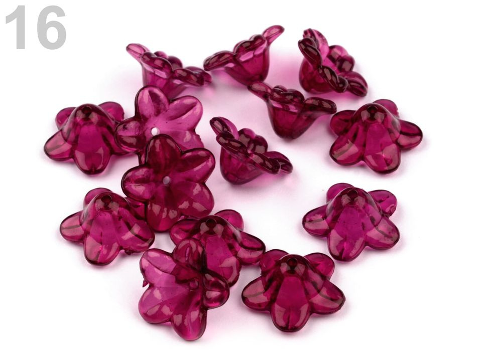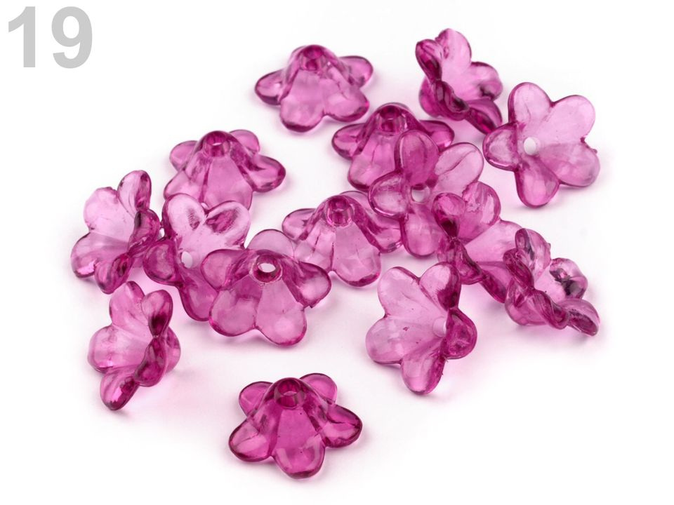 Půvabný plastový květ ve tvaru zvonku, nadchne především korálkářky, které rády tvoří květinové šperky.