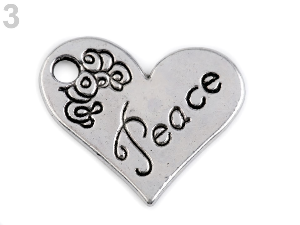 Přívěsek je jednostranný, u středu mírně prohnutý. Průvlek má tvar srdíčka.