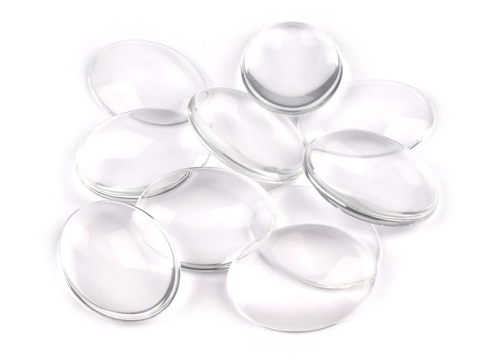 Oválný skleněný kabošon využijete na tvorbu působivých šperků nebo magnetek. Můžete na něj nalepit jakýkoli obrázek nebo fotku. Pro přilepení kabošonu doporučujeme použít čiré lepidlo na šperky. Kabošon je vhodný k nalepení do kovového lůžka nebo k obšití rokajlem.