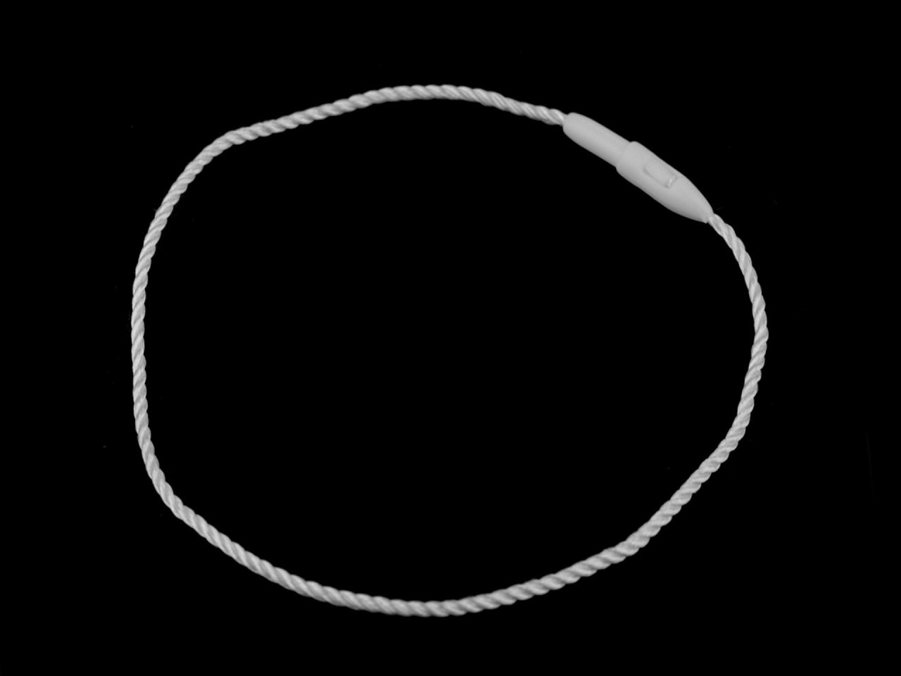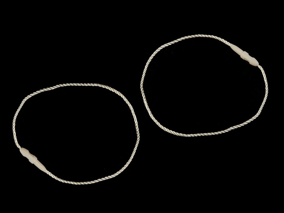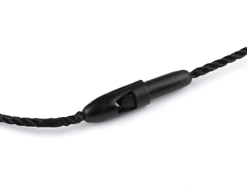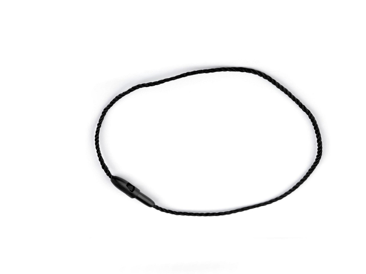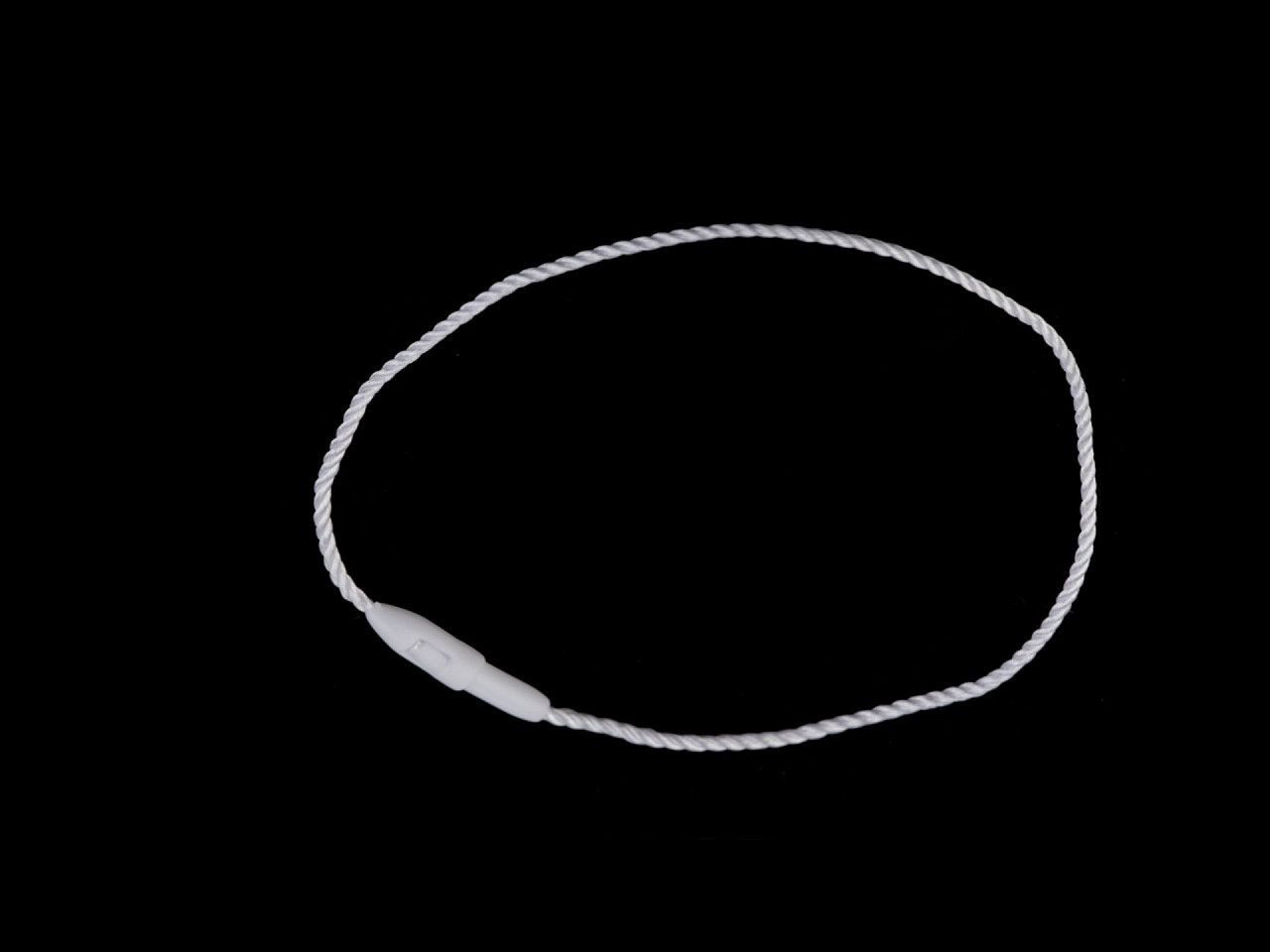 Šňůrka s plastovou pojistkou je vhodná k připevnění visačky či cenovky na oděvy a doplňky, většinou tam, kde nelze použít špendlík kvůli poškození oděvu. Šňůrku připevníte jednoduše skrz pojistku, která má na sobě háčky, tudíž nehrozí otevření. Využijete ji opakovaně.