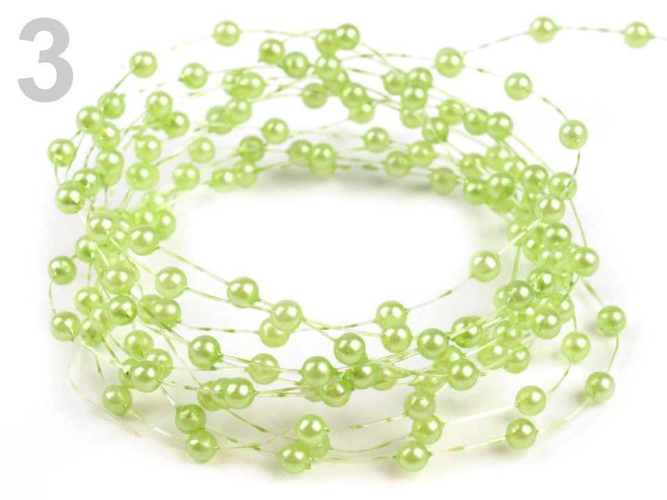 Perličky na silonu jsou vhodné jako dekorace slavnostních či svatebních tabulí, můžete je rozvněž použít k dozdobení kytic, účesů atd. V jednom balení jsou 2 m perliček.