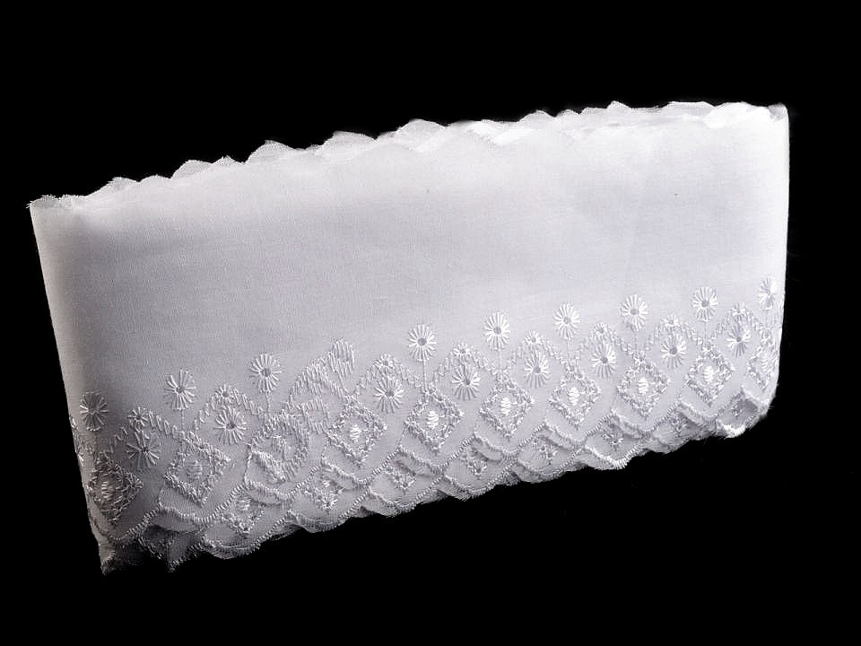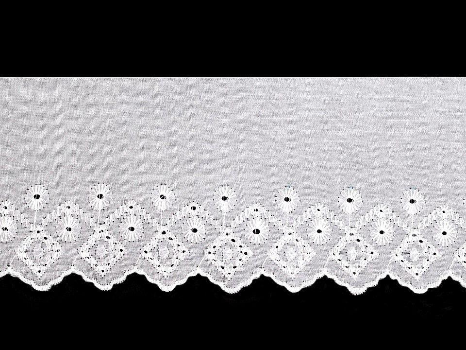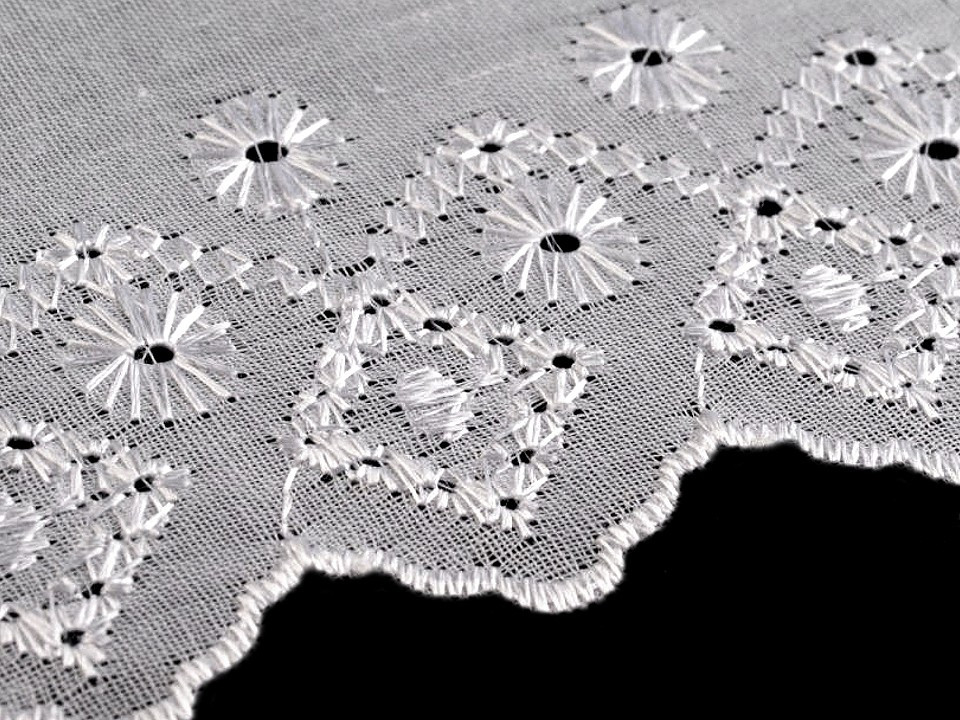Madeiru zdobí designový motiv s lesklou dírkovou výšivkou.