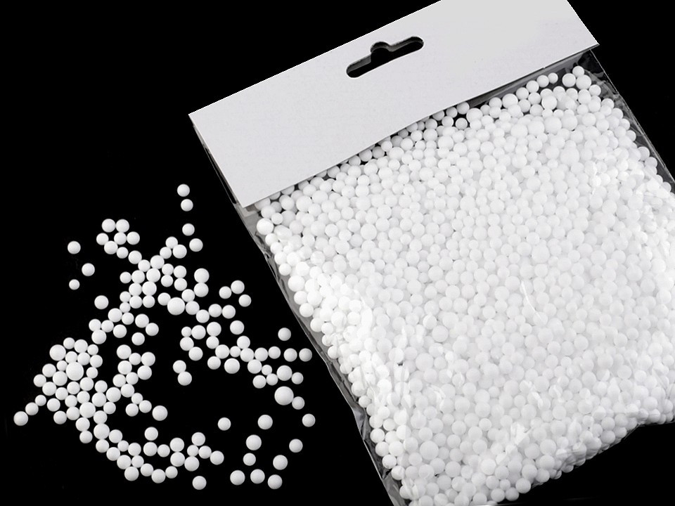 Drobné dekorační polystyrenové kuličky potěší především floristy a aranžéry. Dokáží vykouzlit dokonalou iluzi sněhu. ůžete je využít k ozdobení truhlíků, květináčů apod. Jsou zajímavé nasypané v průhledných nádobách a dozdobené různými větvičkami a stvoly.
