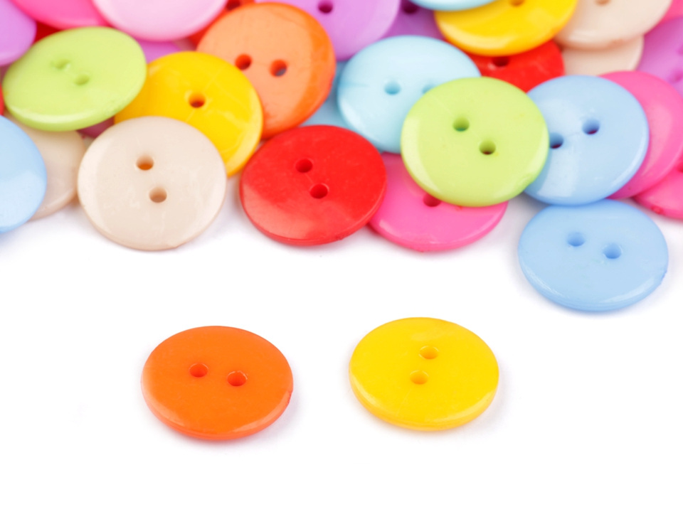 Hladké knoflíky vás zaujmou svými pestrými barvami. Můžete s nimi vesele oživit oděvy, doplňky nebo různé dekorace. Jsou vhodné i na zdobení foto rámečků, alb, pozvánek, přáníček apod.