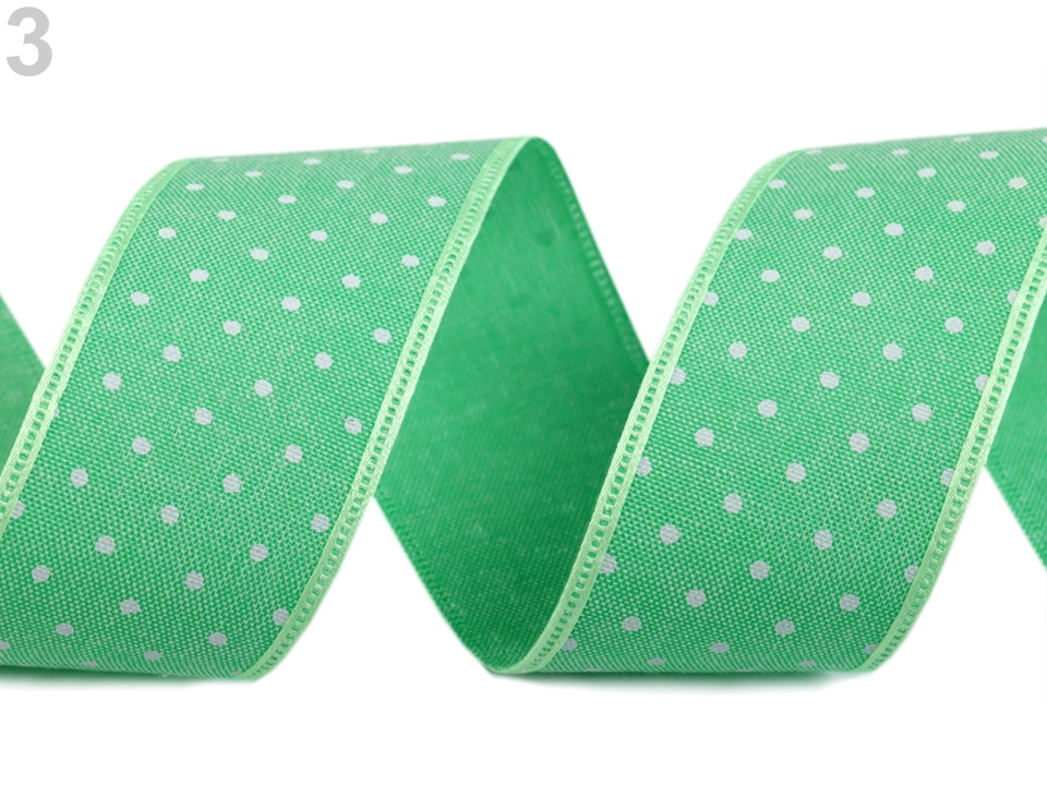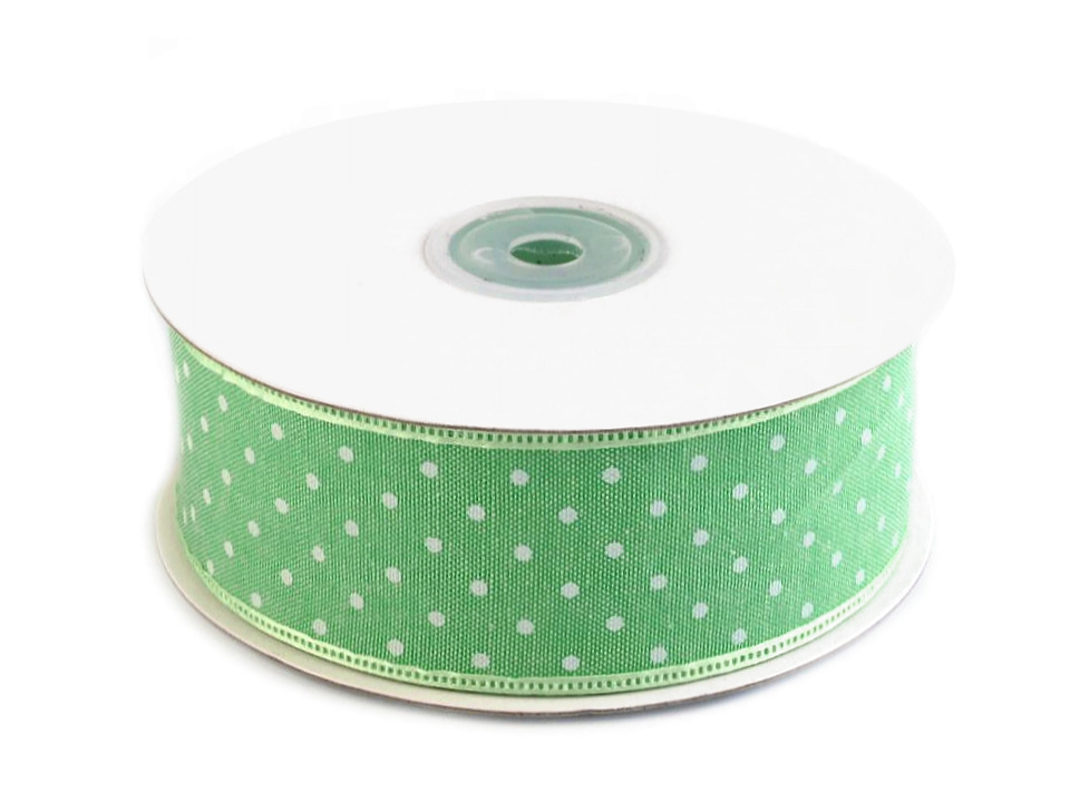 Tkaná stuha je ozdobená oblíbeným puntíkovým vzorem. Potisk je jednostranný.