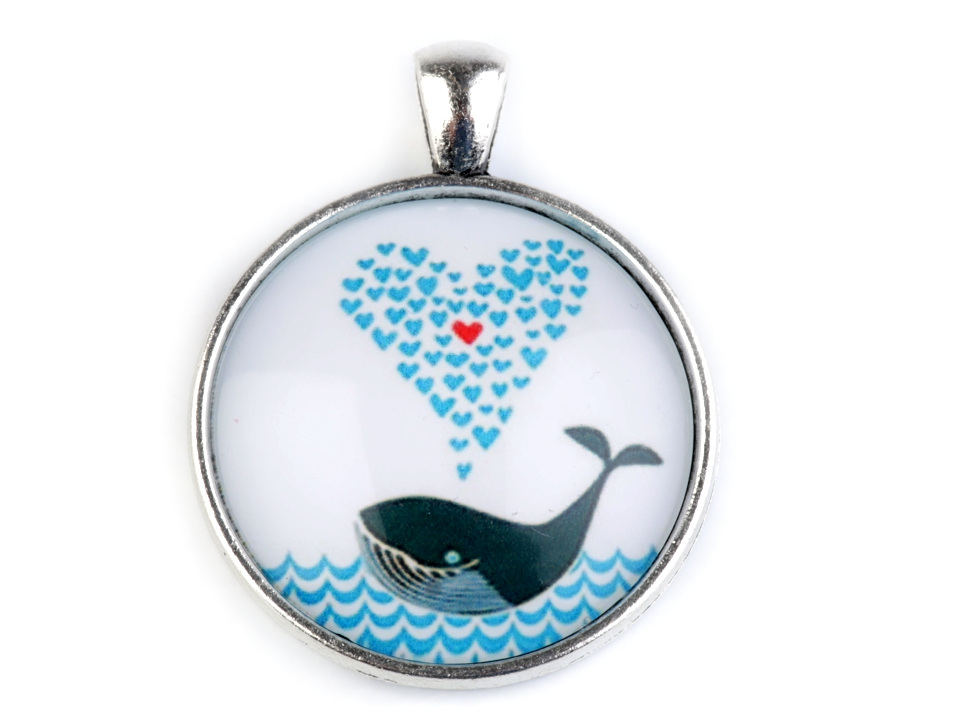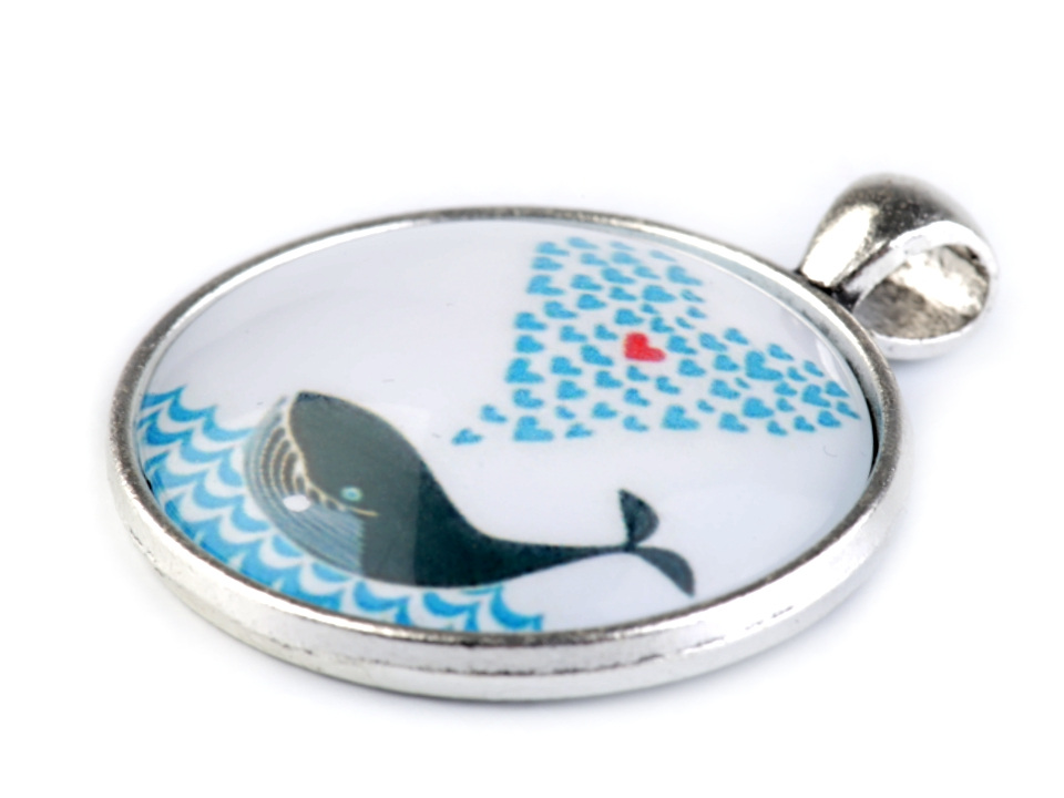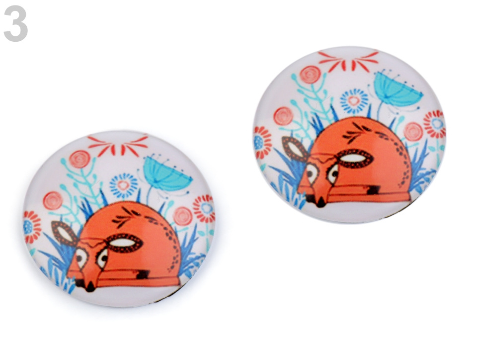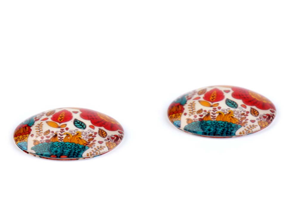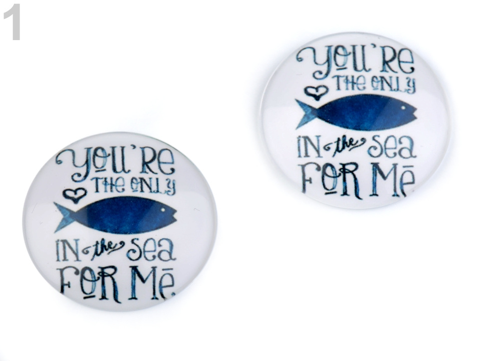 Kulaté skleněné kabošony s mořskými, květinovými a zvířecími motivy.