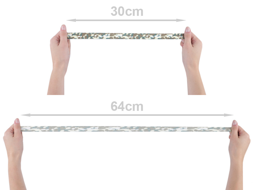 Pruženka v army stylu, který je velmi oblíbený, je elastická (tažná), po roztažení se vrátí zpět do původního stavu.