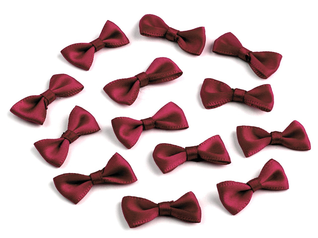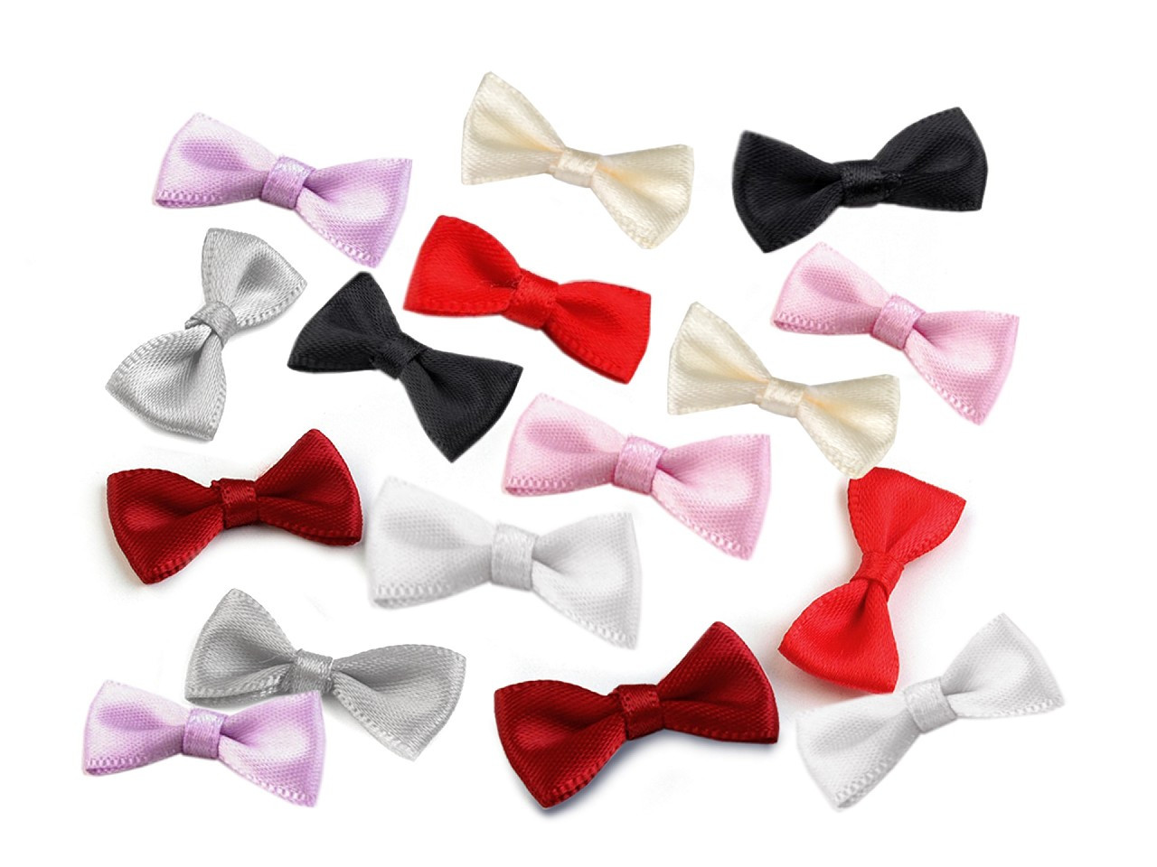 Saténová mašlička je vhodná k našití nebo nalepení. Můžete s ní ozdobit oděvy i doplňky, například psaníčka, tašky, kabelky, čelenky do vlasů apod.