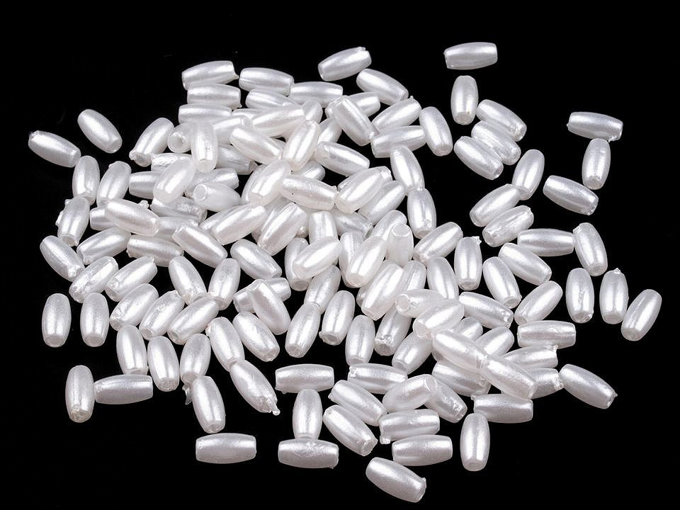 Velmi užívaná velikost lesklých korálků s efektem voskovaných perlí. Oválky jsou plastové, tudíž velmi lehké. Používají se jak na šité šperky, tak pro odlehčení při výrobě náhrdelníku v kombinaci s většími a těžšími korálky.
