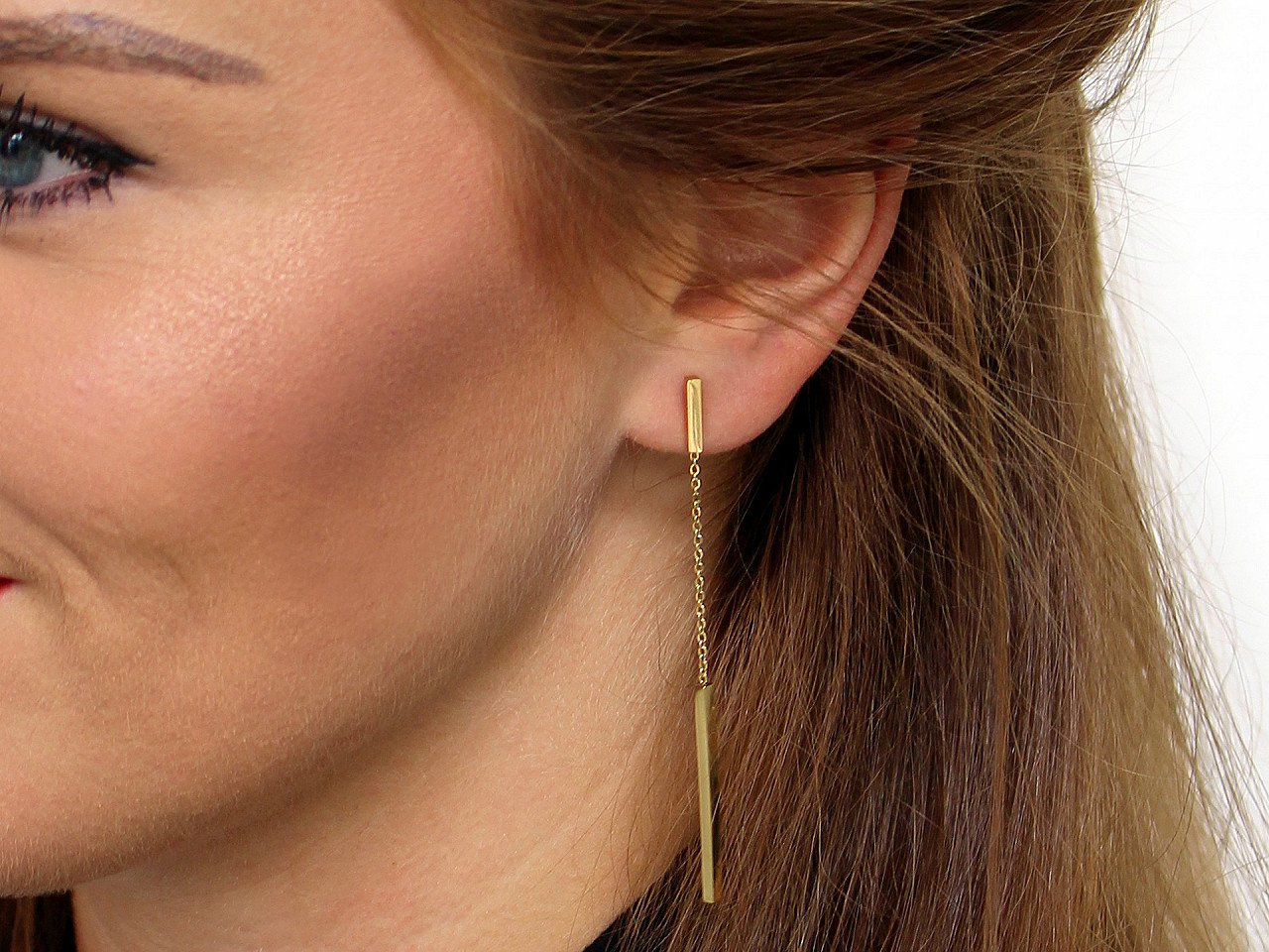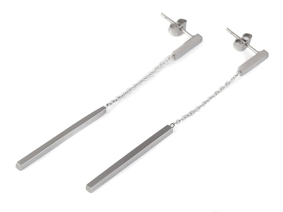 Efektní visací náušnice z kvalitní nerezové oceli protáhnou a zeštíhlí linii šíje. Jejich minimalistický styl dotáhne každý outfit k dokonalosti. Mají vysoký zrcadlový lesk.