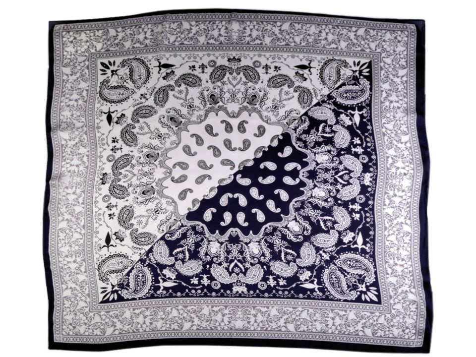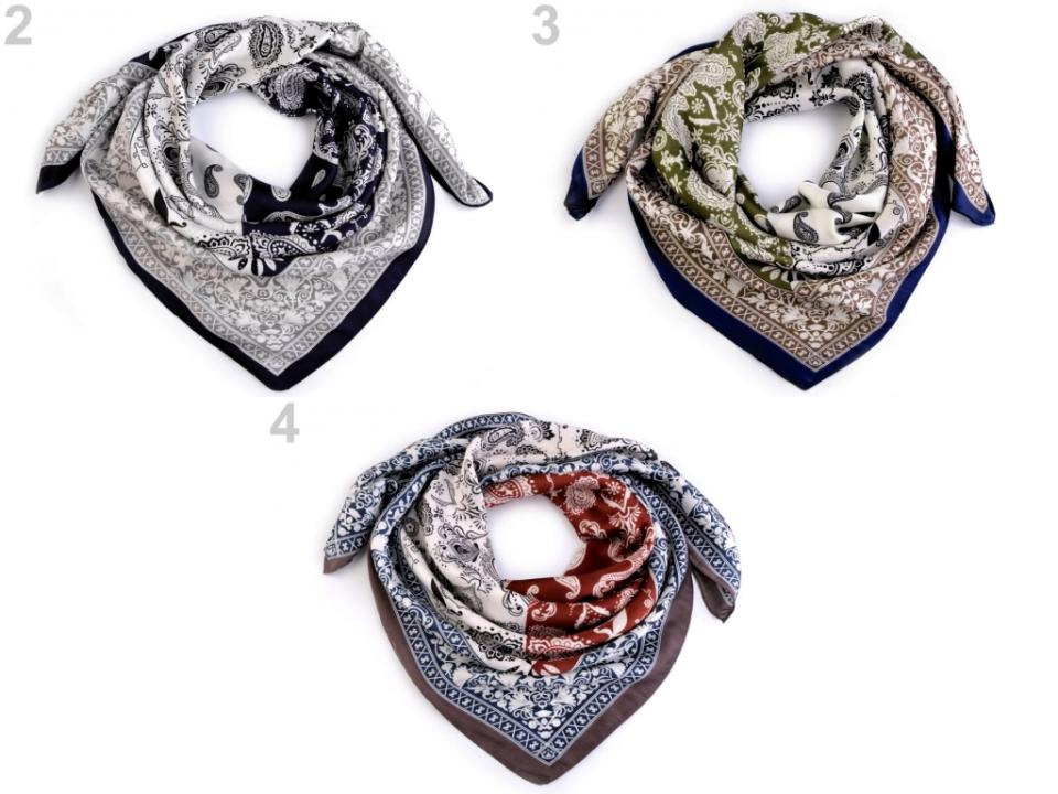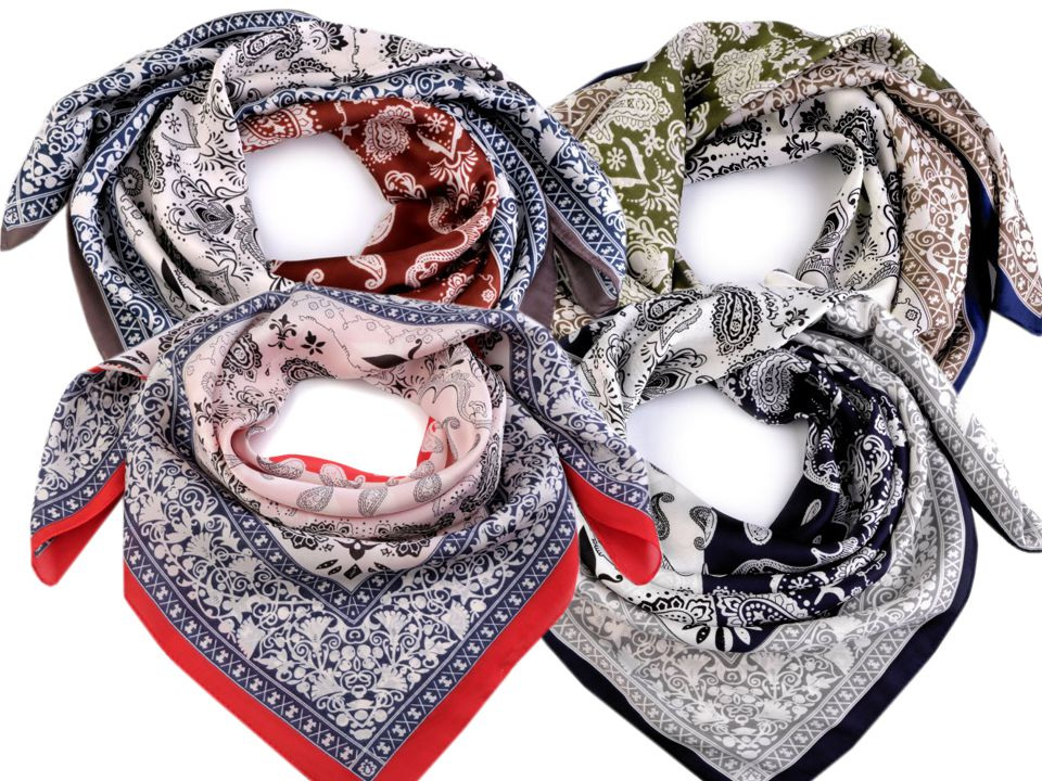 Saténový šátek s potiskem využijete k jakémukoliv oblečení. Je vhodný ke každodennímu nošení. Jeho příjemný materiál vás bude doslova hýčkat, připomíná hedvábí. Šátek má potisk vzorem paisley. Můžete ho uvázat do slušivého uzlu, který podtrhne dokonalost vašeho oděvu. Oživíte s ním sáčko, halenku i tričko.