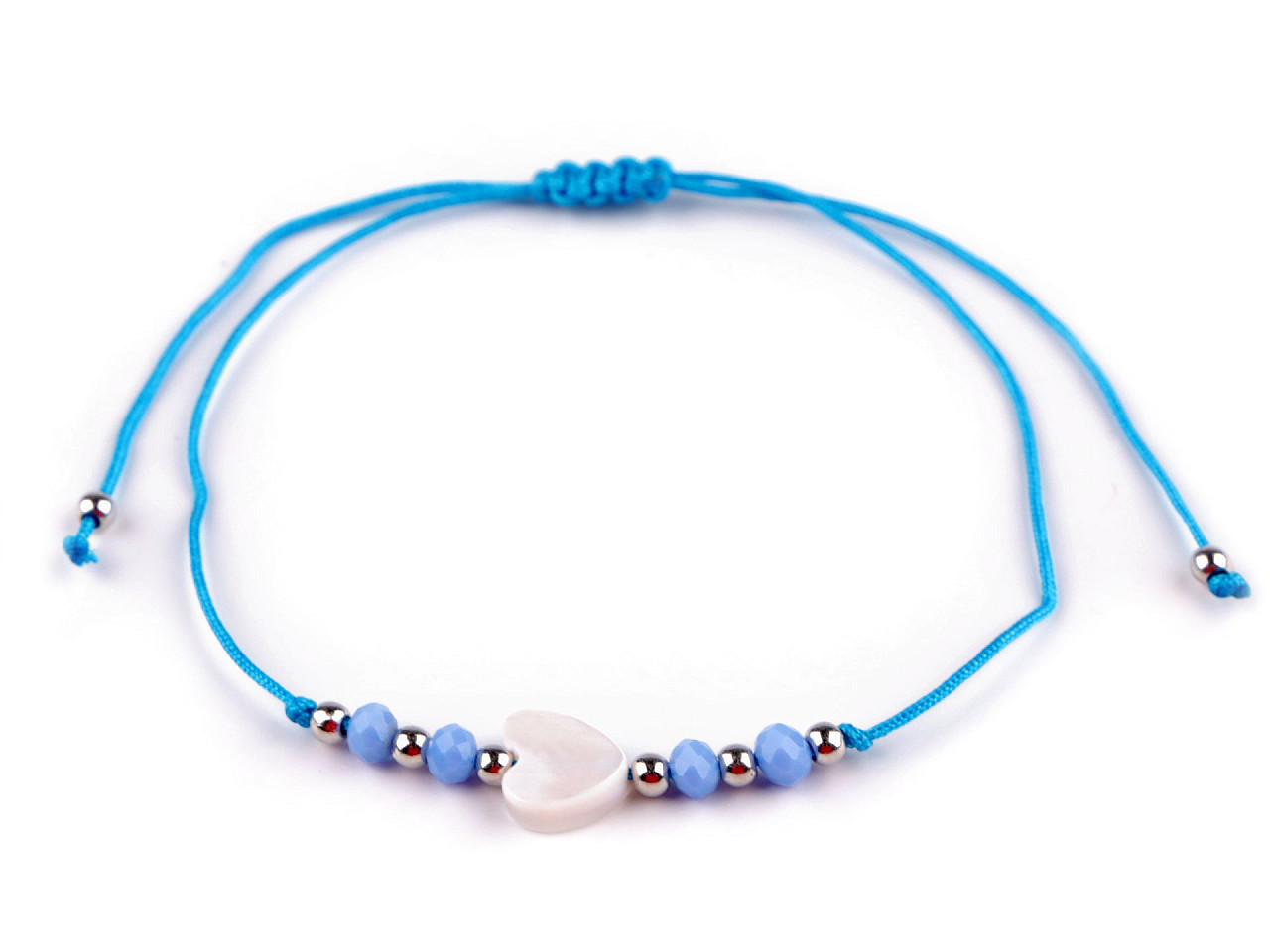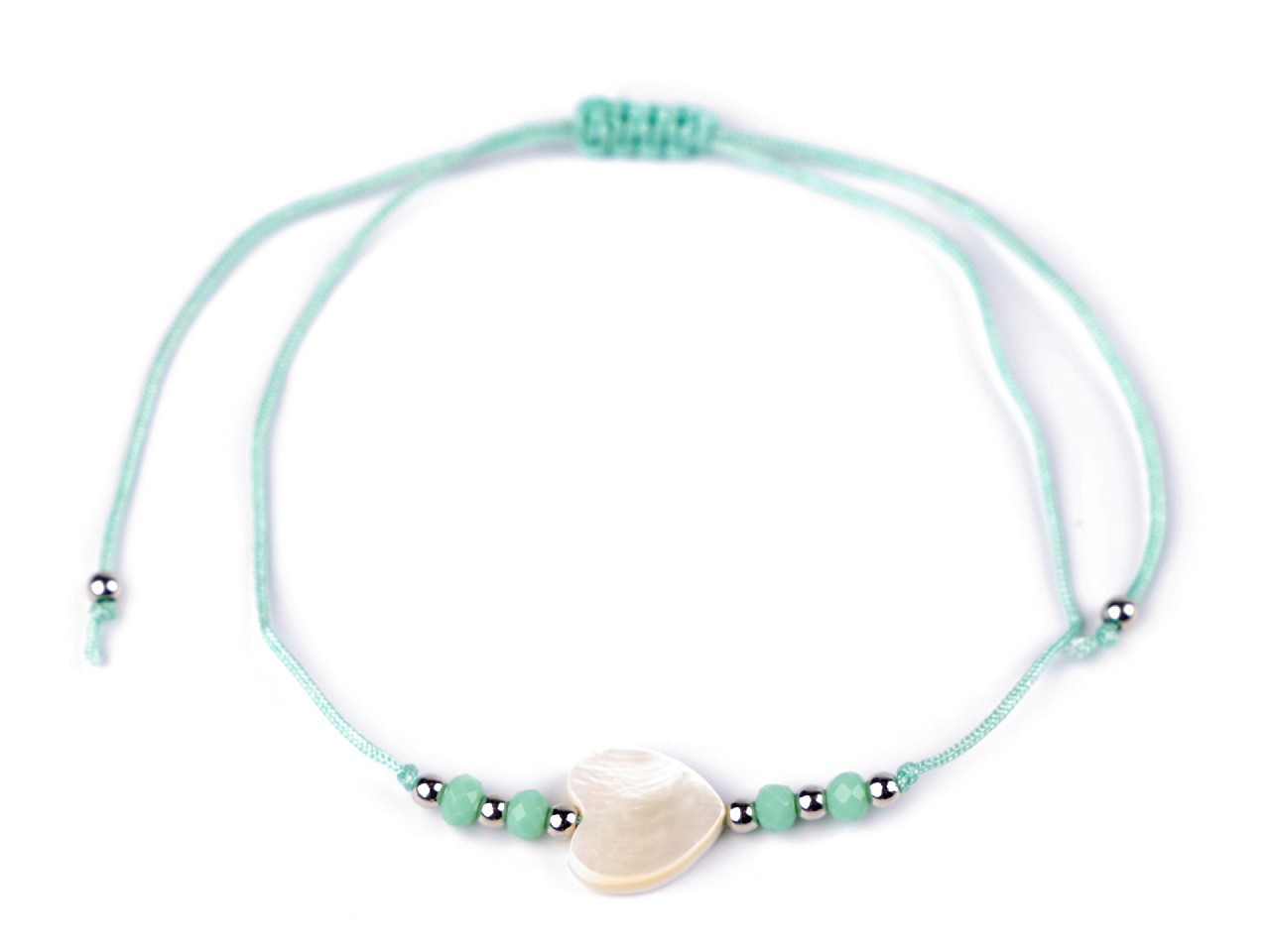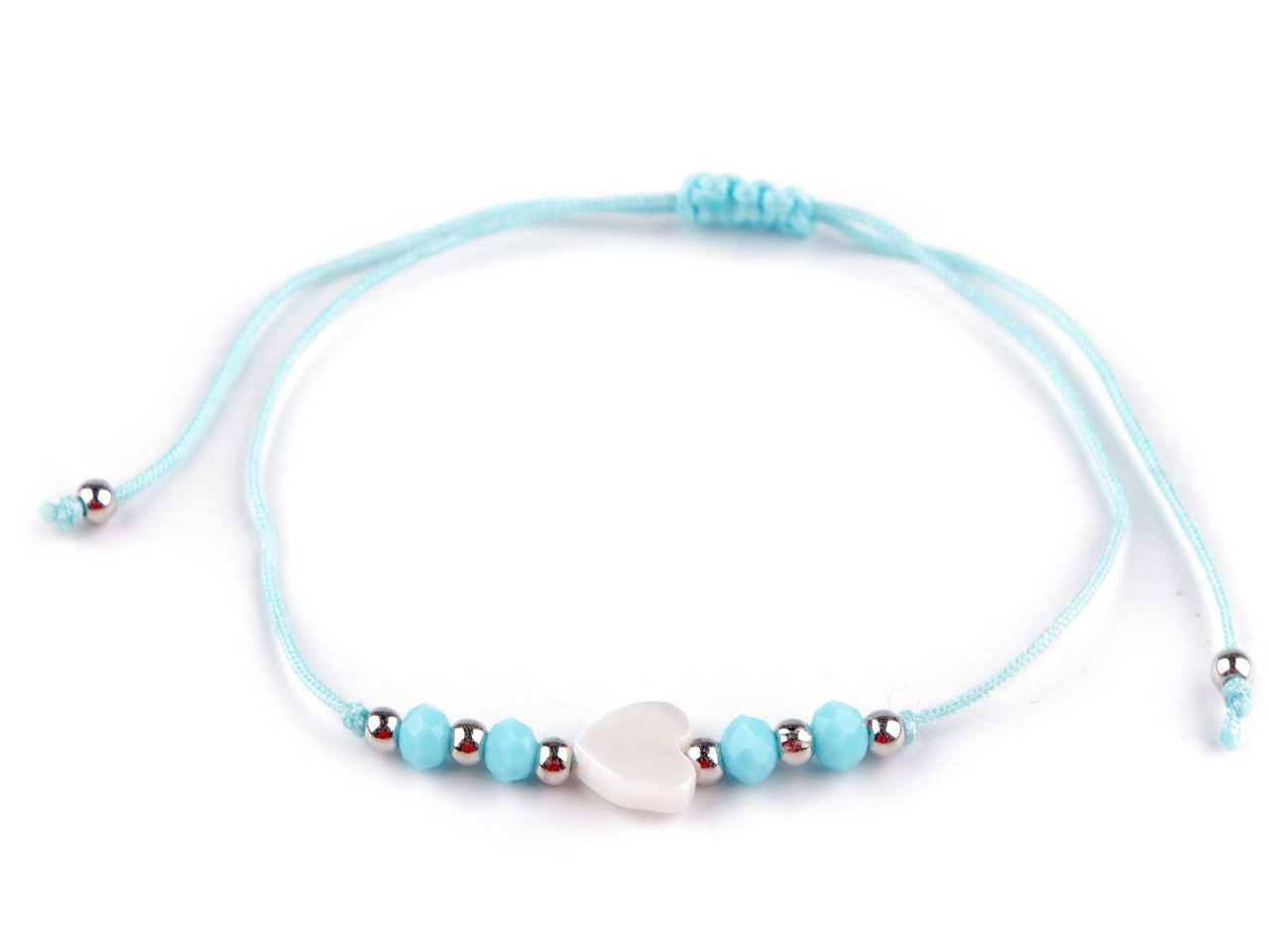 Náramky s perleťovým srdíčkem jsou dokonalým doplňkem letního outfitu. Hodí se jak k šatům, tak k halenkám, tričkům i plavkám. Prodávají se jako sada 12 ks na papírové kartě k zavěšení, každý náramek má jinou barvu.